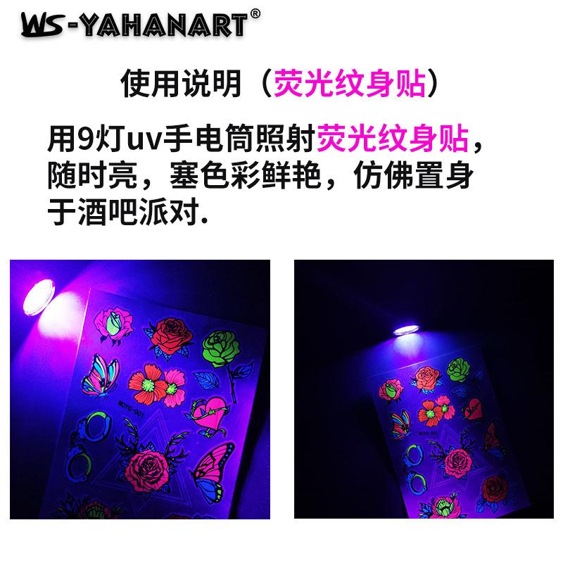 ¡Las calcomanías de tatuaje fluorescentes funcionan mejor con las linternas UV vendidas en nuestra tienda! (Haga clic en la imagen de abajo para ir al enlace de compra)