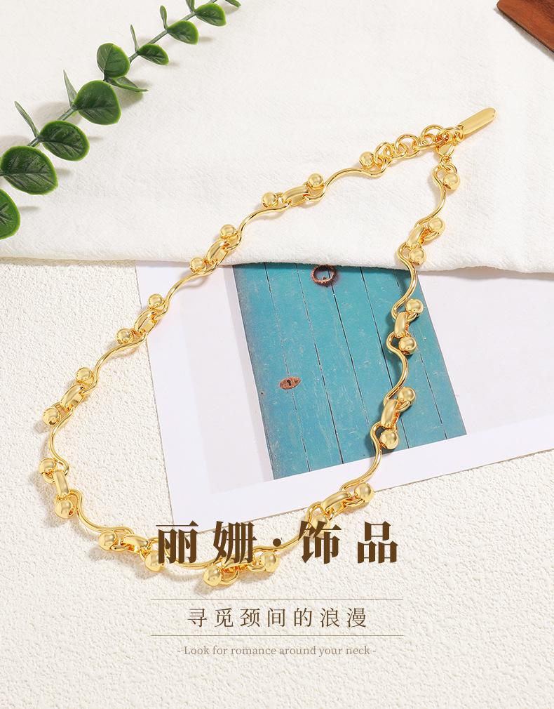 Collar personalizado con costuras de gancho para chica sexy transfronteriza europea y americana, collar de clavícula de lujo ligero de oro real de 18 quilates, collar de moda que combina con todo
