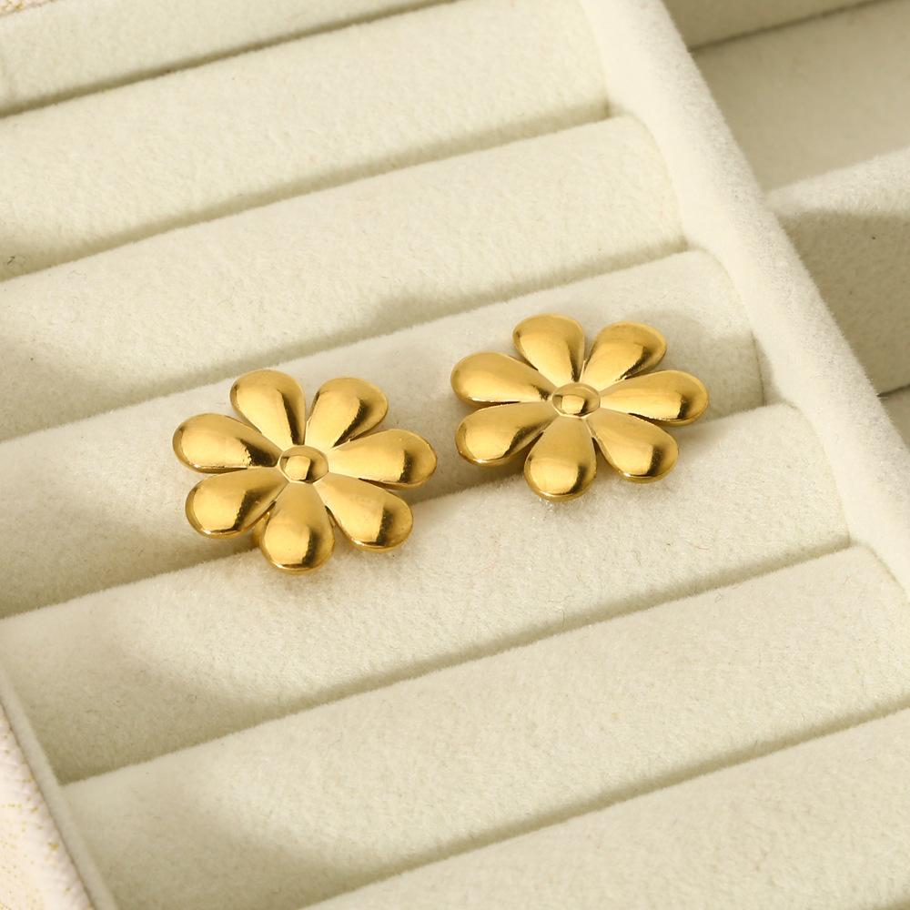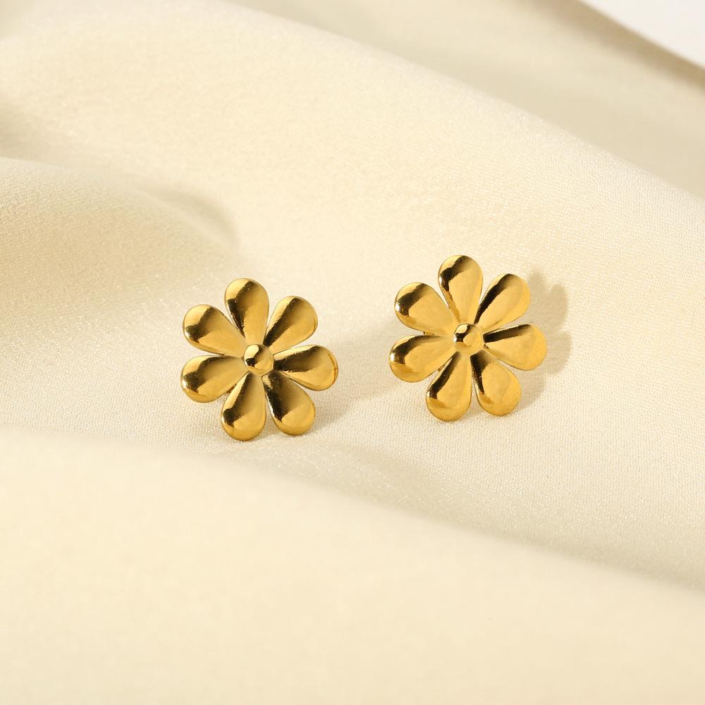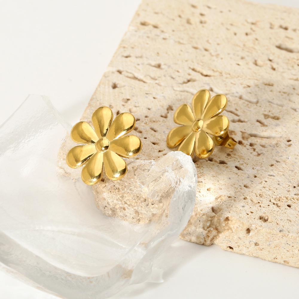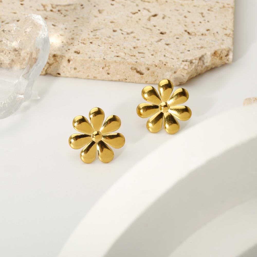 Pendientes de acero de titanio europeos y americanos, estilo Ins, pequeños pendientes de flores, modernos y sencillos, de acero inoxidable en oro de 18 quilates, exquisitos pendientes pequeños para mujer.