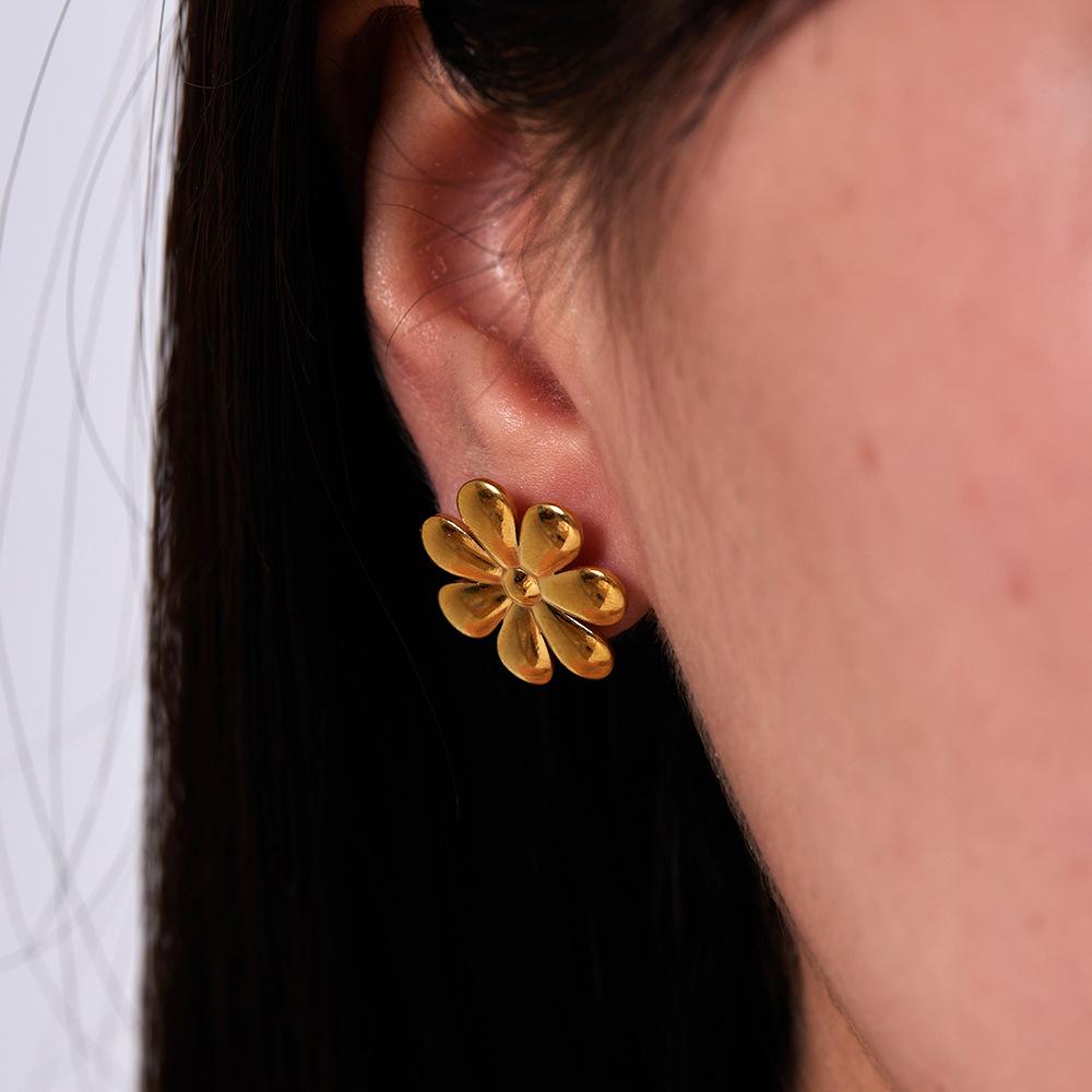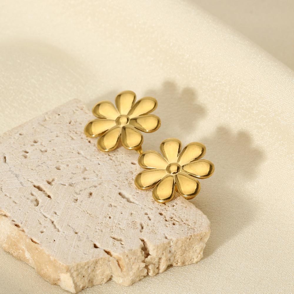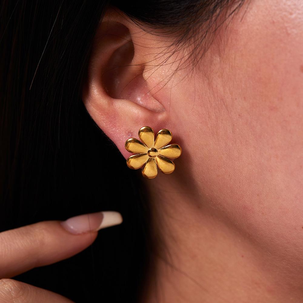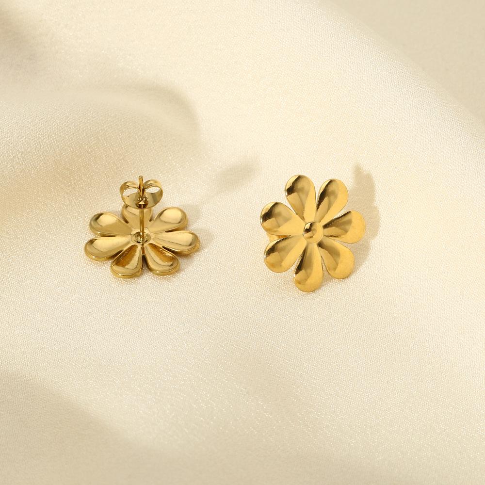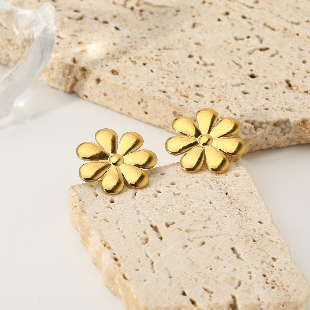 Pendientes de acero de titanio europeos y americanos, estilo Ins, pequeños pendientes de flores, modernos y sencillos, de acero inoxidable en oro de 18 quilates, exquisitos pendientes pequeños para mujer.