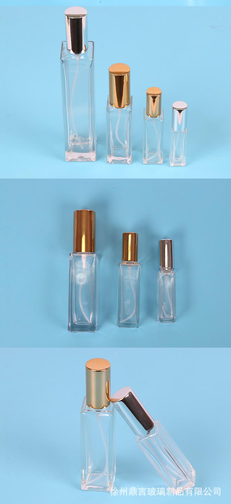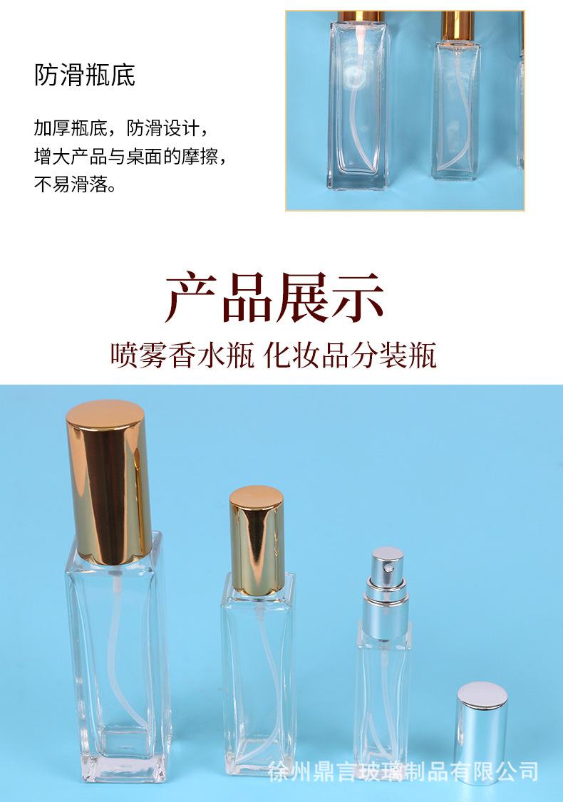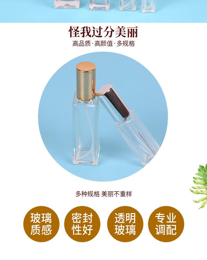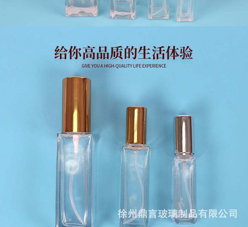 Botella de perfume de vidrio cuadrada de 15 ml, botella de vidrio con atomizador transparente, botella vacía para viaje, botella portátil de muestra pequeña vacía