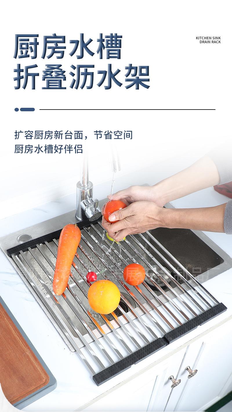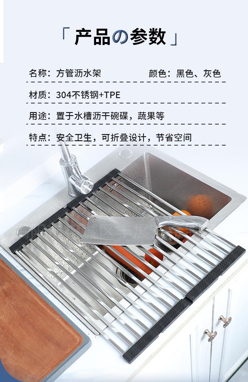 Procesamiento de escurridor de tubo cuadrado plegable personalizado de acero inoxidable 304 para fregadero, escurridor de platos, estante filtrador de frutas y verduras