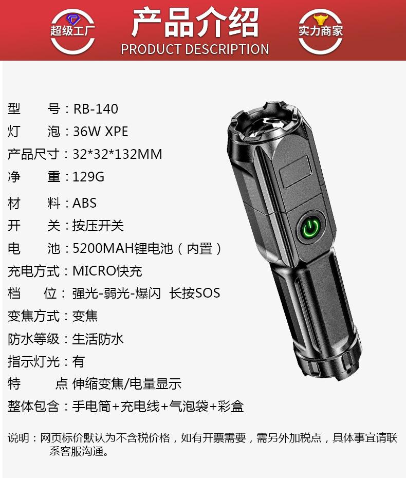 RB-140 flashlight Standard Model (bare light + charging cable + built-in 5200mah lithium battery