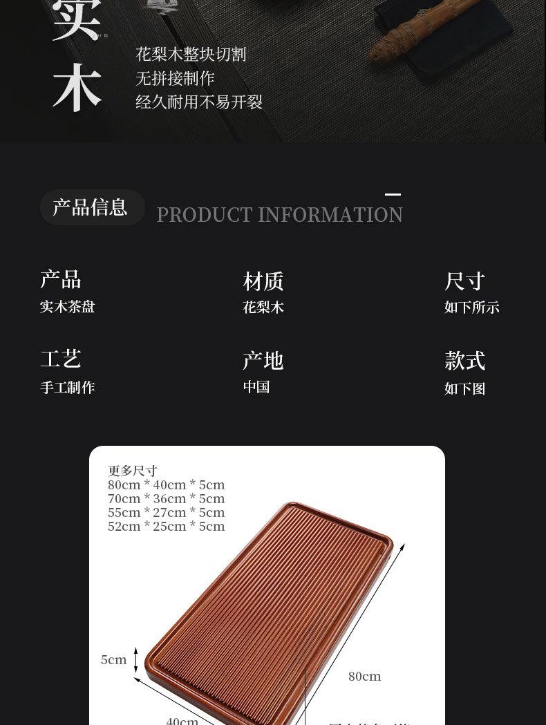 Mesa de té pequeña de drenaje de madera maciza de palisandro, bandeja de té, juego de té de kung fu, mesa de té de madera maciza, mesa de té de mar de té para el hogar