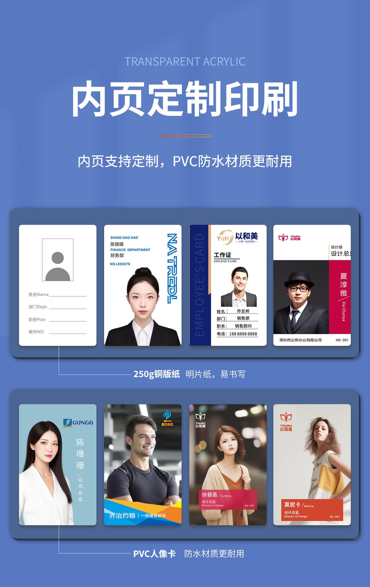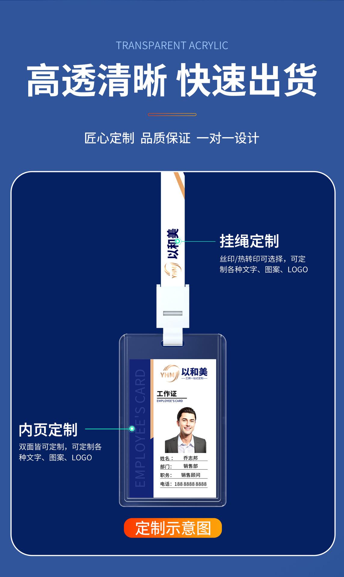 Juego de tarjetas de identificación acrílicas transparentes Youhe, tarjeta de trabajo, tarjeta de pecho personalizada, tarjeta de trabajo, cordón, juego de tarjetas de fábrica para personal, tarjeta de trabajo