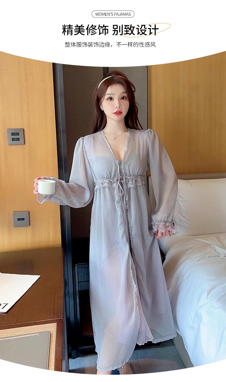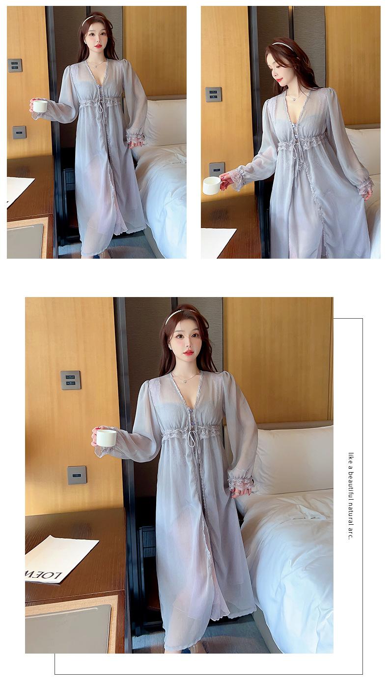 Camisón Sexy Transparente Rosa Melocotón para Mujer, Disponible en Múltiples Colores, Cuello en V Profundo, Camisón Cómodo y Transpirable para Primavera