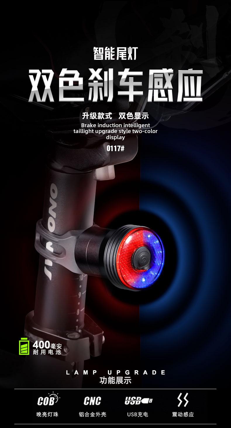 Luz trasera de freno inteligente para bicicleta transfronteriza, luz de inducción para bicicleta de montaña, carga USB, luz trasera para bicicleta de carretera, conducción nocturna