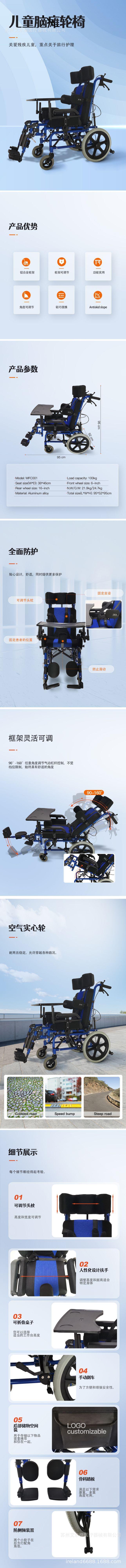 Suministro de Silla de Ruedas Cochecito para Niños con Obstáculo Residual, Silla de Ruedas de Aleación de Aluminio Totalmente Reclinable, Respaldo Alto, Silla de Ruedas Protectora Multifuncional