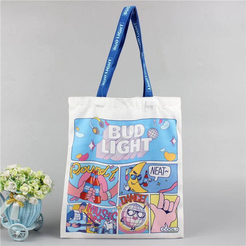 Bolsa de Lona Portátil Logo Personalizado Poliéster Completo Colorida Estudiante Cierre Bolsa de Compras de Lona Bolsa de Lona Bolsa de Algodón Venta al por Mayor