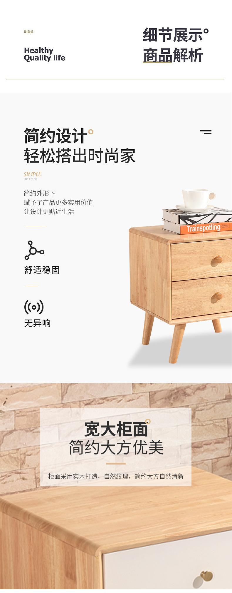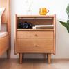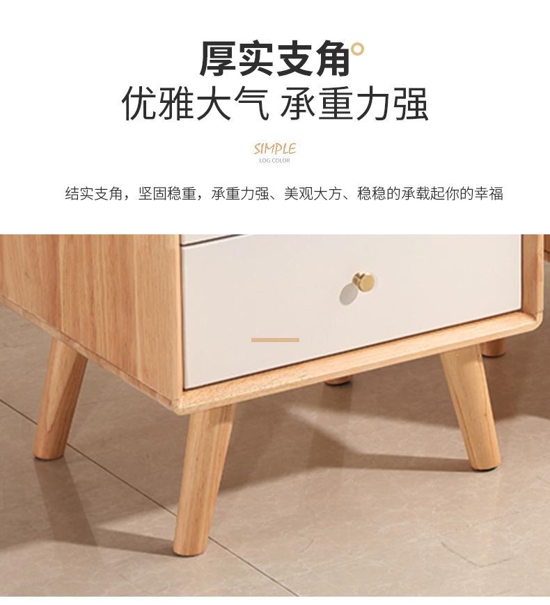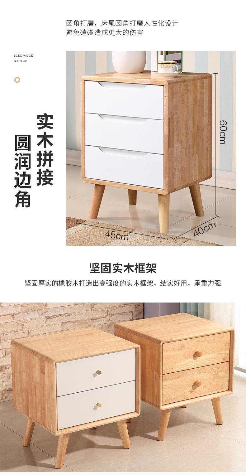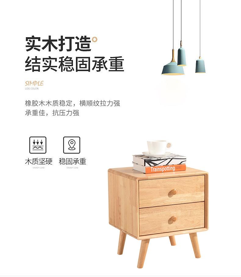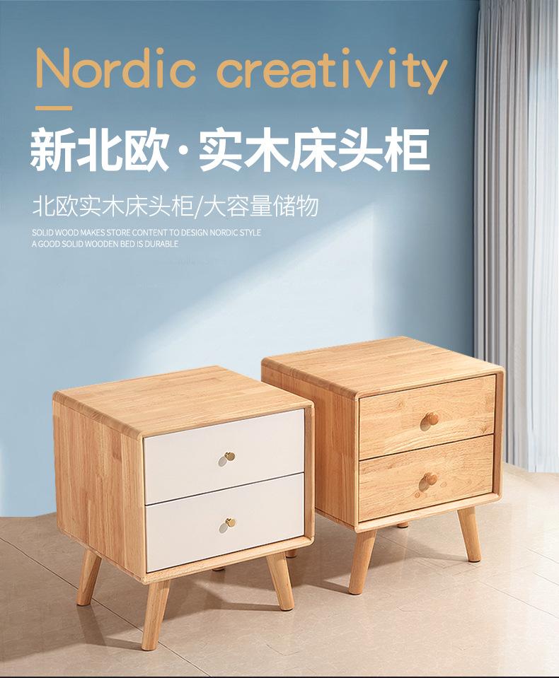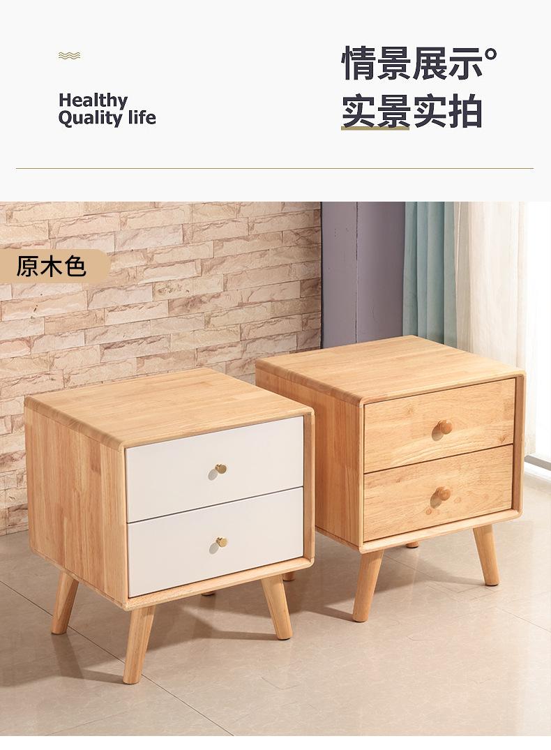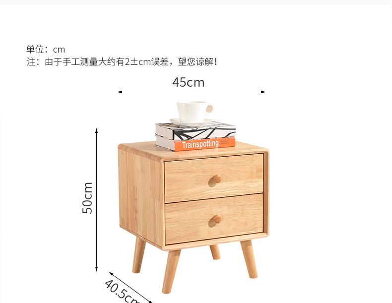Mesita de noche nórdica de madera maciza, sencilla, moderna, de longitud completa, mini armario de almacenamiento de madera maciza con dos cajones para dormitorio, apartamento pequeño.