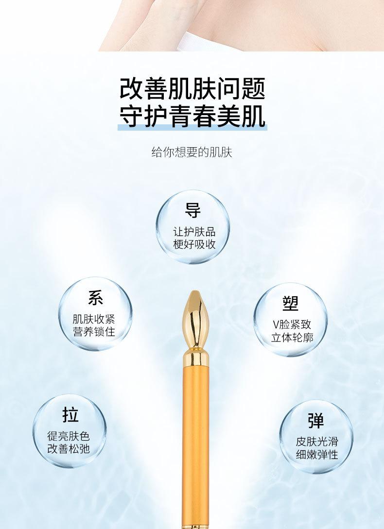 Masajeador de oro de 24 quilates con varilla de oro para ejercitar los músculos faciales, rodillo de masaje, varilla de belleza, instrumento eléctrico de masaje facial.