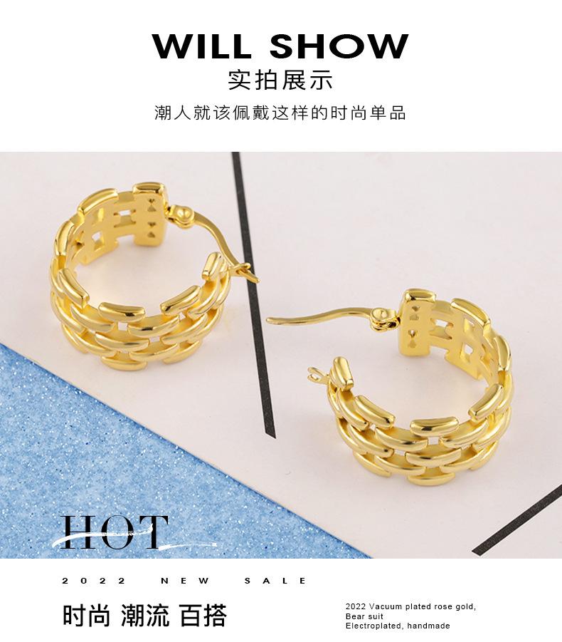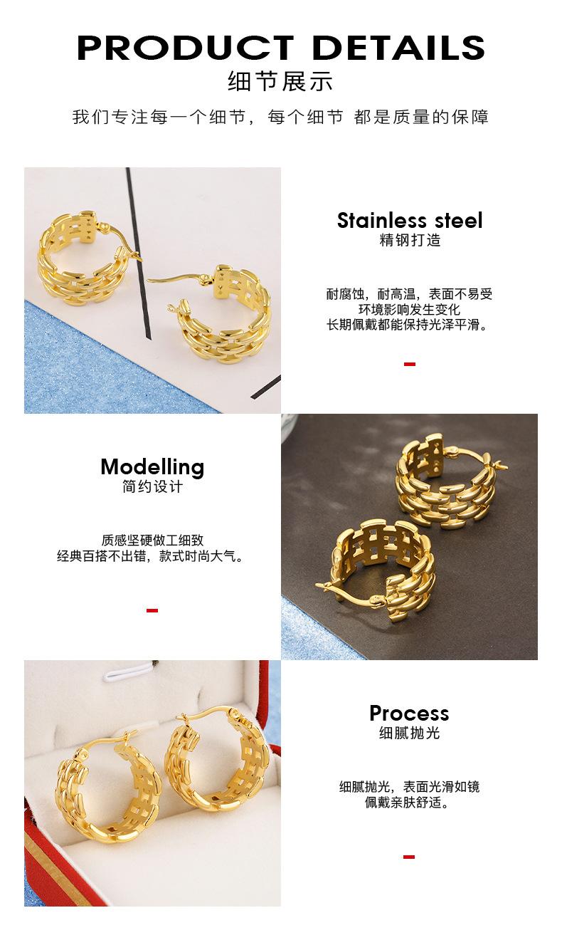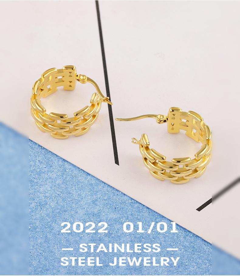 Aretes Clásicos Populares de Acero Inoxidable en Stock al Por Mayor Aretes de Moda Modernos de Doble Capa con Cadena de Herradura y Hebilla Conectada para Hombres y Mujeres