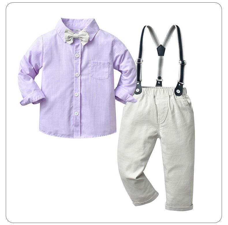 Ropa infantil de comercio exterior al por mayor, ropa infantil británica de dos piezas, traje de bebé de manga larga de primavera y otoño para niño.
