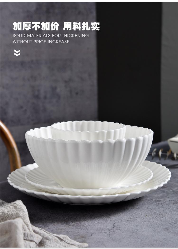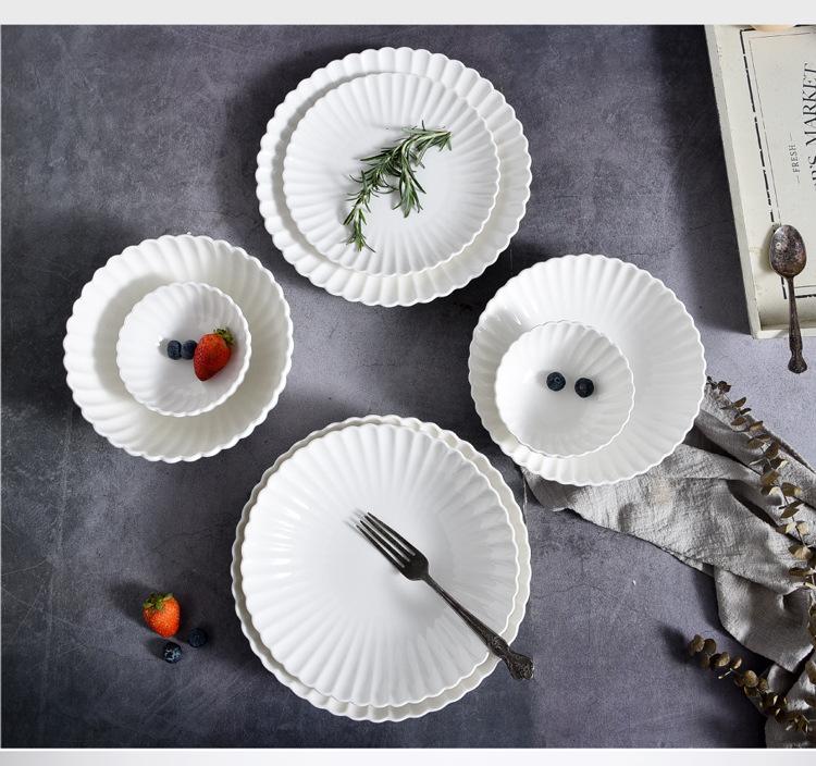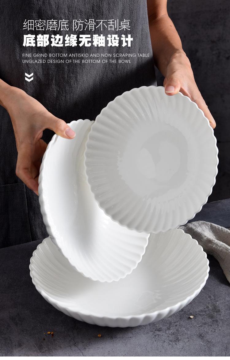 Plato de cerámica blanca pura con encaje creativo, vajilla de cerámica de estilo nórdico para el hogar, plato para verduras, tazón para fideos, tazón para sopa, tazón para arroz