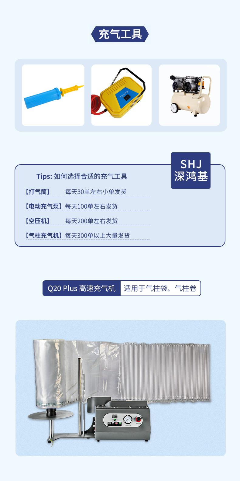 No hay problema. Si no necesita mucho embalaje, puede anotarlo al realizar su primer pedido para obtener una bomba de inflado gratuita. Si necesita usar muchos embalajes con columna de aire, comprar una bomba de aire puede reducir considerablemente su carga de trabajo. Si es un gran comerciante y necesita usar una gran cantidad de embalajes con columna de aire, un inflador de bolsas con columna de aire de alta velocidad puede ayudarle a ahorrar mano de obra y mejorar la eficiencia del embalaje. Para más información, póngase en contacto con el servicio de atención al cliente.