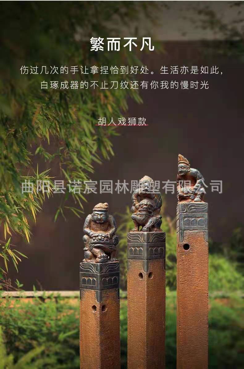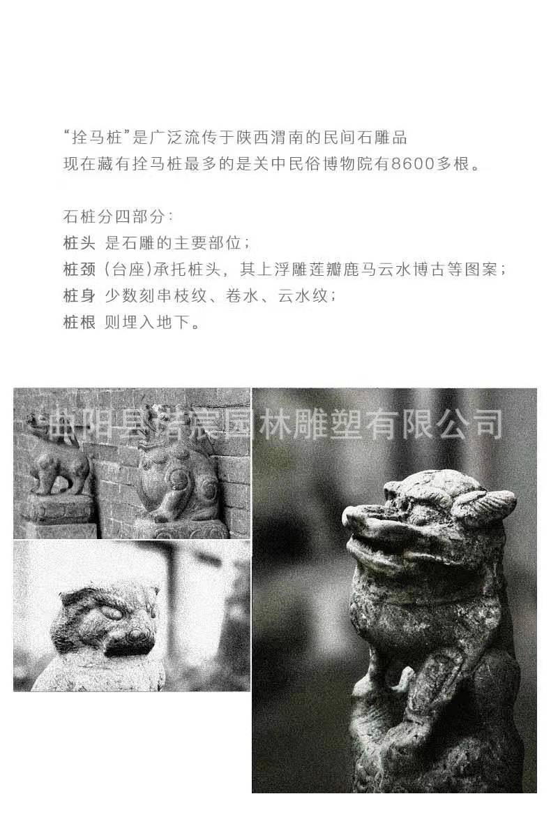Venta al por mayor de fábrica, pila de caballo de corbata, tallado de piedra antigua, león de piedra, puerta de patio, decoración frontal, pequeño patio chino, paisaje, columna de caballo de perno