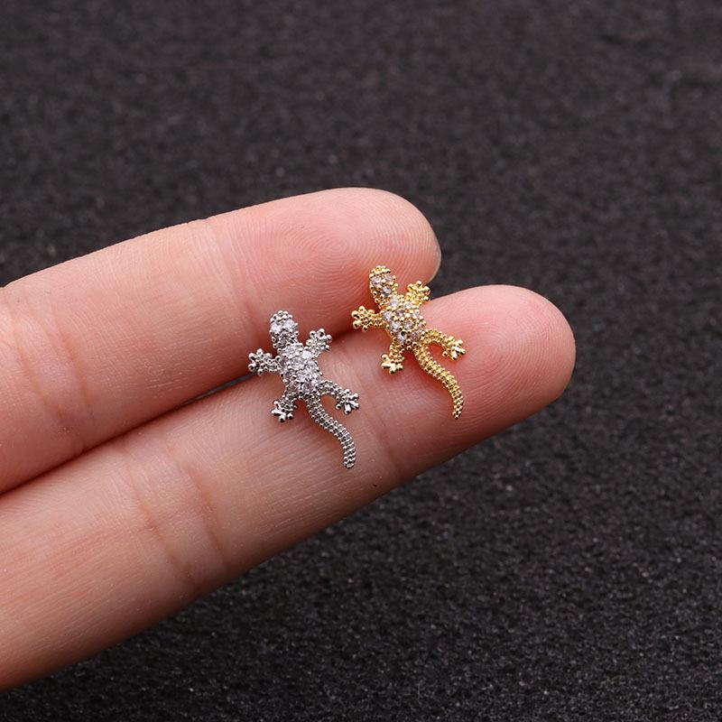 | nombre del producto | Joyería transfronteriza aretes personalizados de gecko de varilla delgada circonita perforación de oreja comercio exterior aretes de acero inoxidable al por mayor |