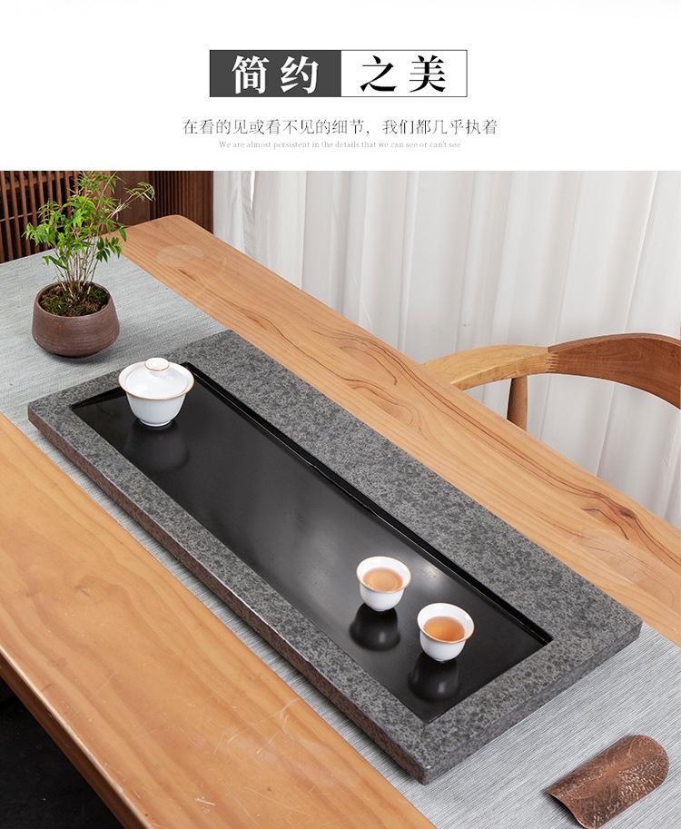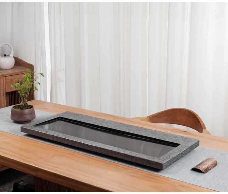 Bandeja de té de piedra Wujin natural nueva 2024, juego de té sencillo para el hogar, moderna, ligera, de lujo, con drenaje para oficina, mesa de té grande