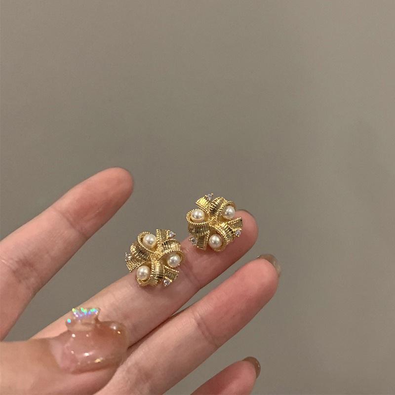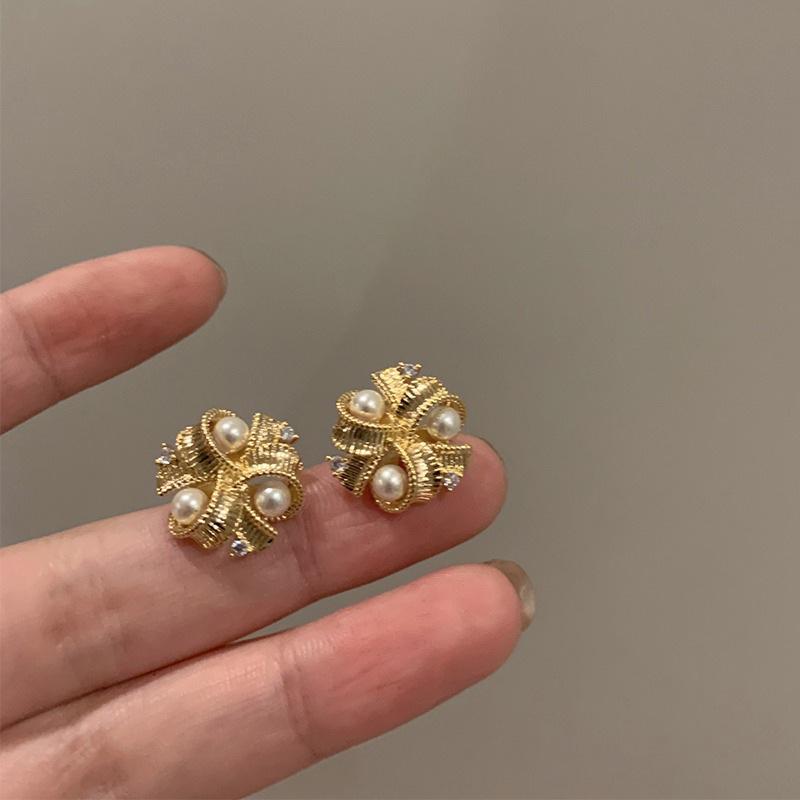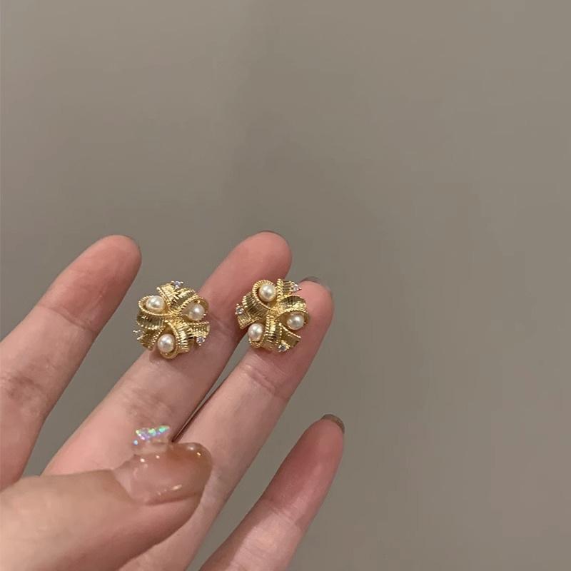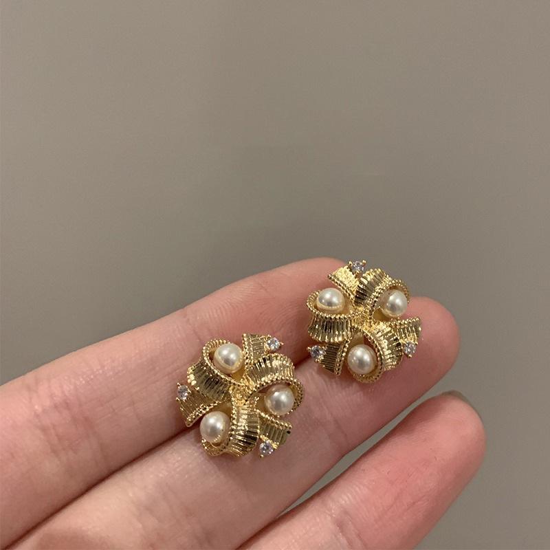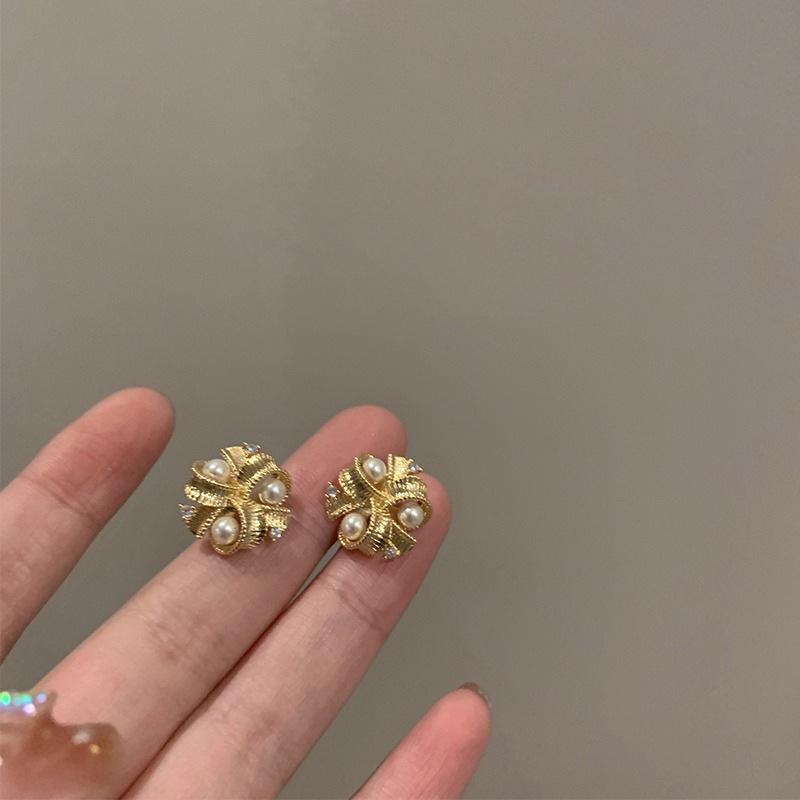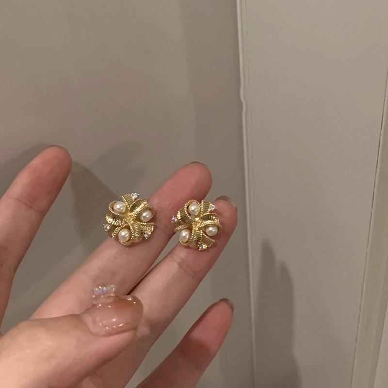 Pendientes de flor de perla retro francesa para niñas 2023, nueva joyería de oreja de temperamento de nicho de moda