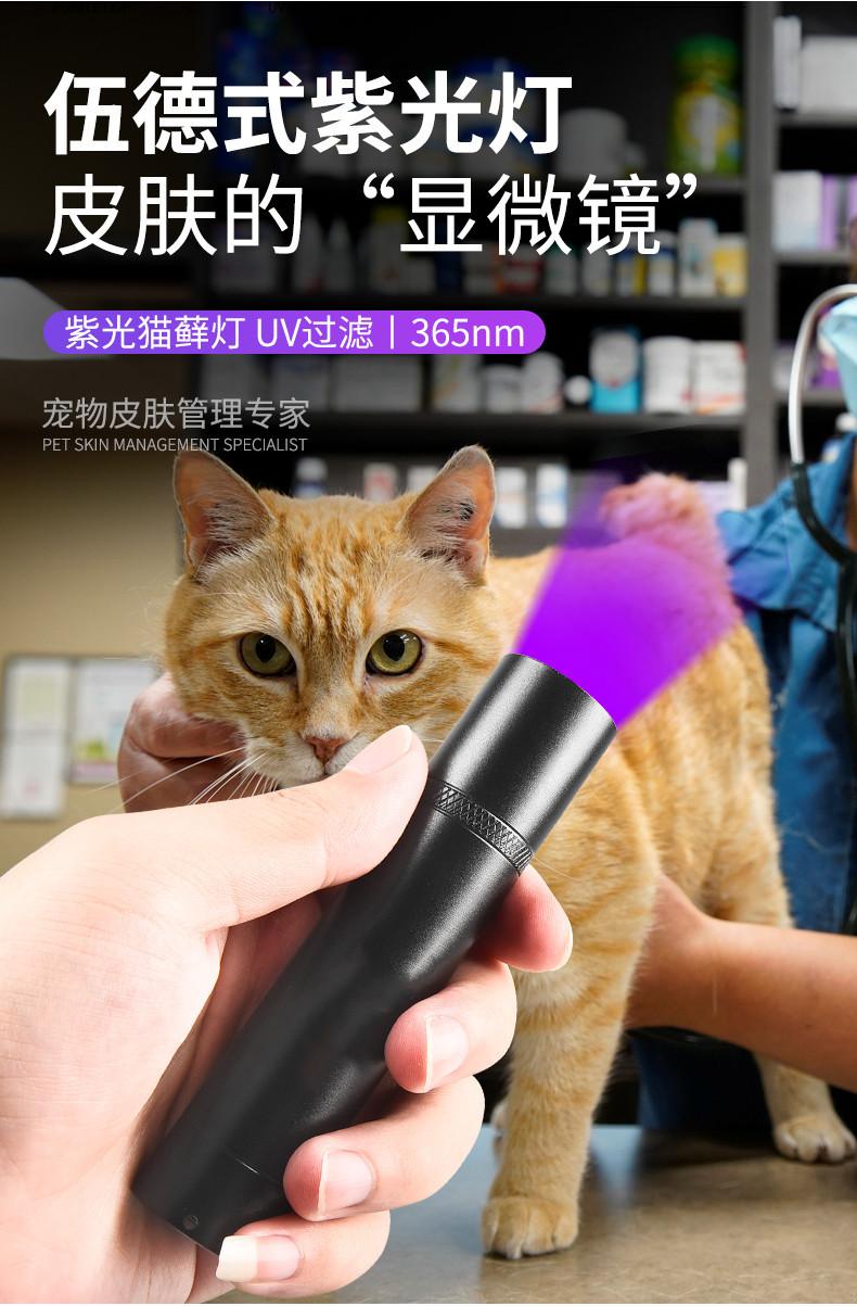 Compra Transfronterizo Wood's cat Musgo púrpura lámpara de detección linterna ultravioleta agente fluorescente uv láser gato dos en uno al por mayor en Joom.pro