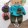 Traje de overol de moda para niño, otoño 2020, nuevo estilo europeo y americano, mono de dinosaurio de dibujos animados para niños, traje de cuatro piezas