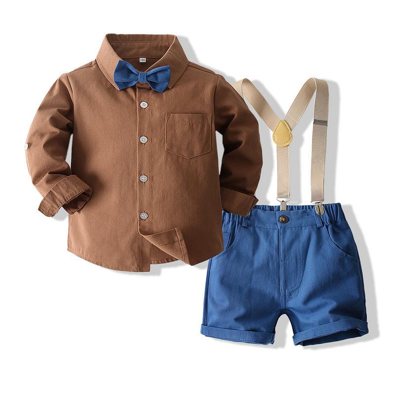 Suministro transfronterizo de primavera, nueva ropa para niños de marcas europeas y americanas, trajes para niños, camisa, chaleco de caballero, pajarita, conjunto de varias piezas