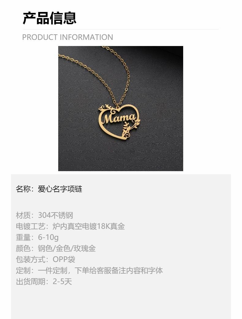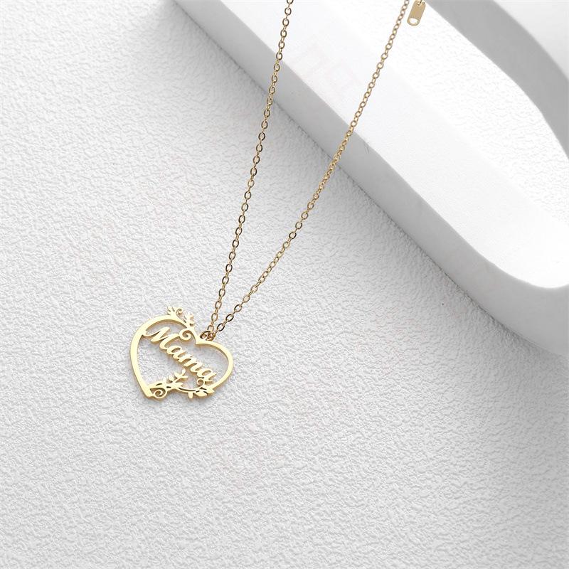 [Personalización de una pieza] Collar con nombre en oro de 18 quilates y colgante de corazón con letras inglesas de acero inoxidable