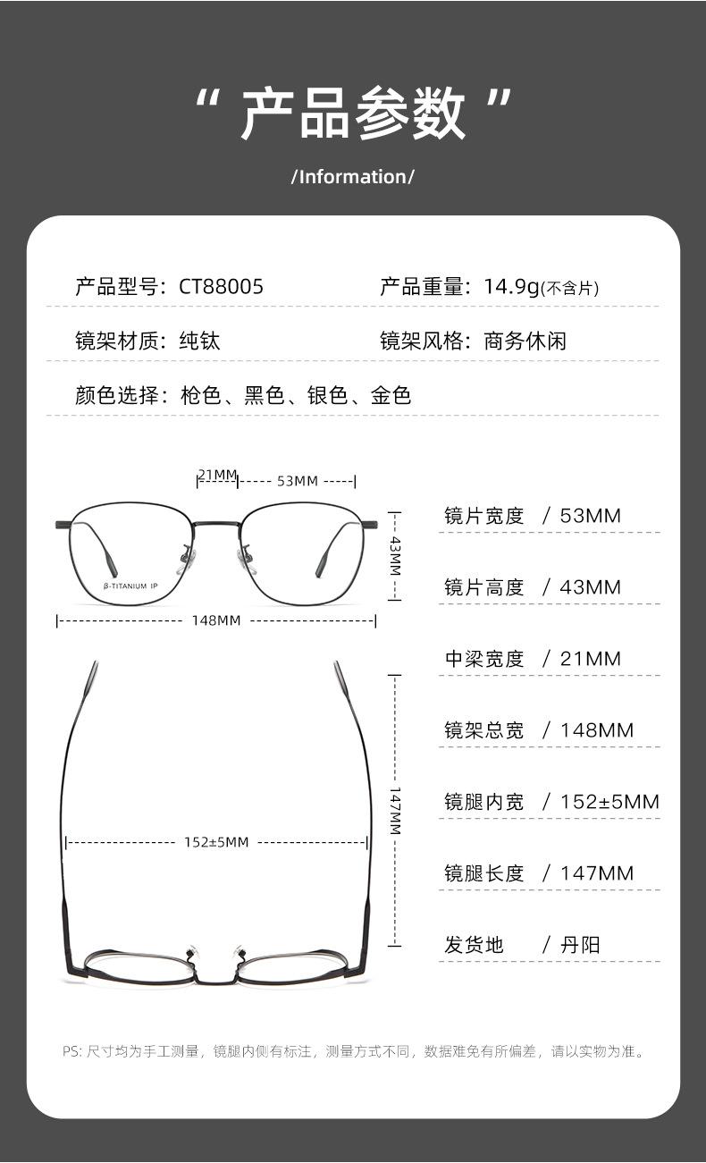Gafas de montura grande de 148 mm, montura de titanio puro, gafas Danyang, gafas para miopía CT88005 para hombres, venta al por mayor