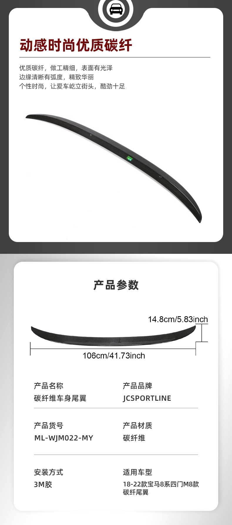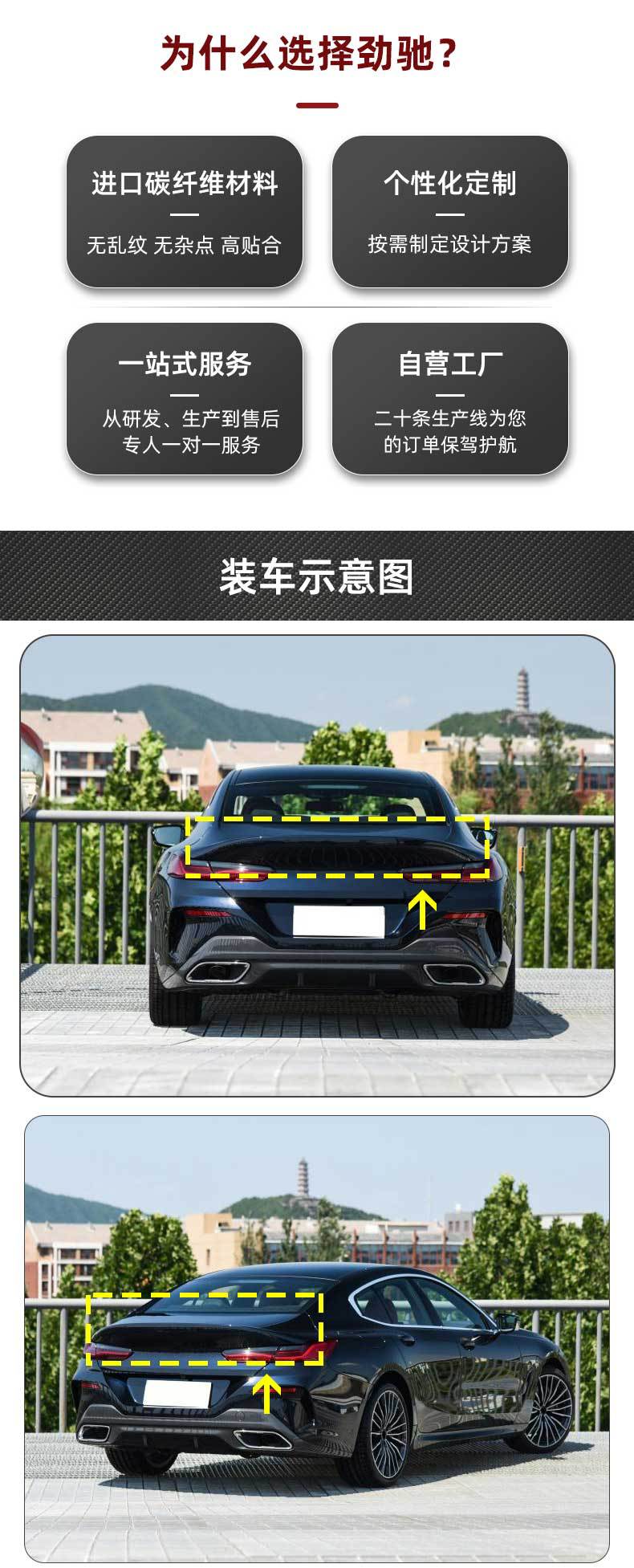 Adecuado para 19-21 BMW fibra de carbono decoración exterior del coche piezas de modificación trasera BMW Serie 8 cuatro puertas M8 cola
