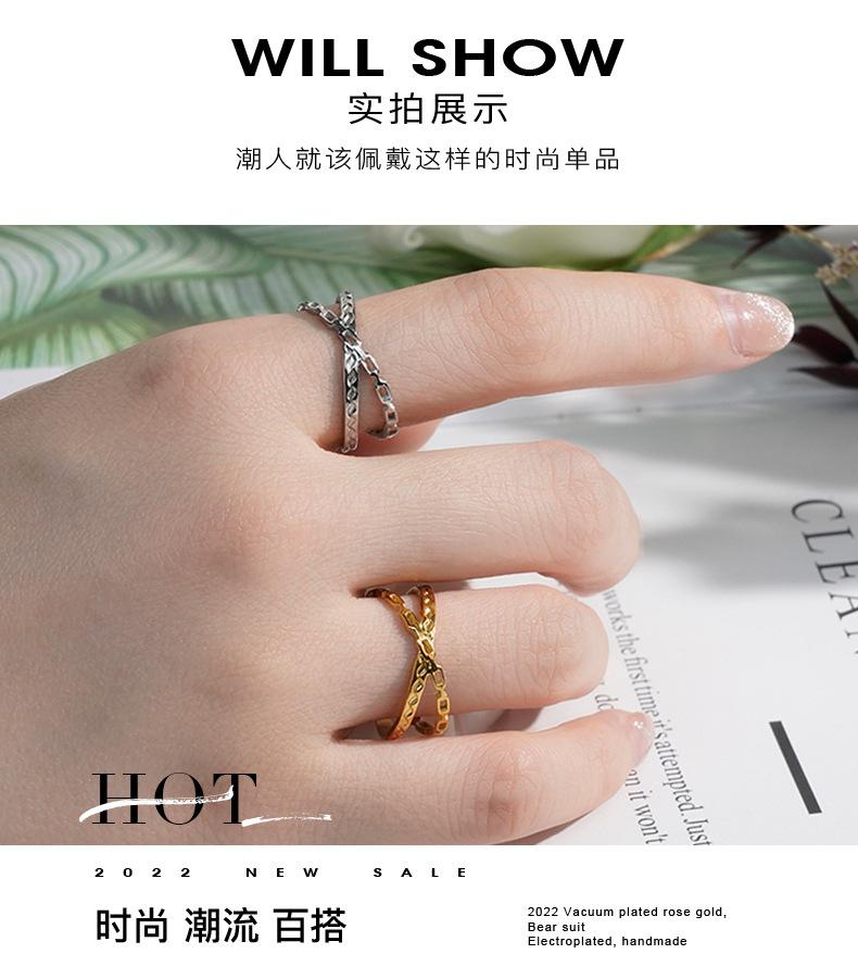 Anillo de acero de titanio para mujer, diseño retro simple, personalidad europea y americana, cadena doble cruzada, accesorios de anillo de dedo de acero inoxidable