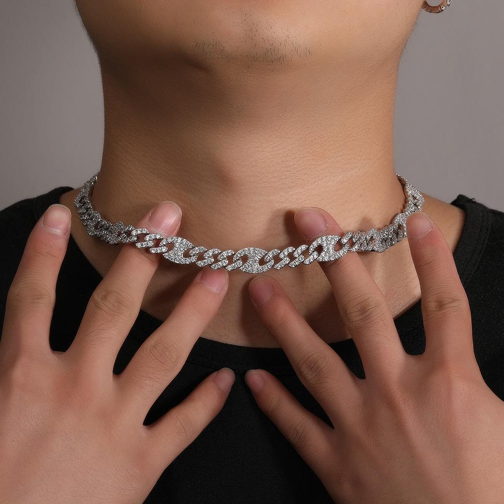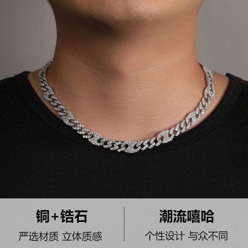 Collar de hip hop para hombre, joyería transfronteriza europea y americana, diseño de nicho, con incrustaciones de cobre, circonita, nariz de cerdo, cadena cubana, cadena de suéter