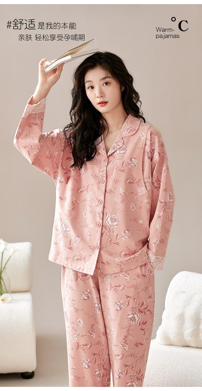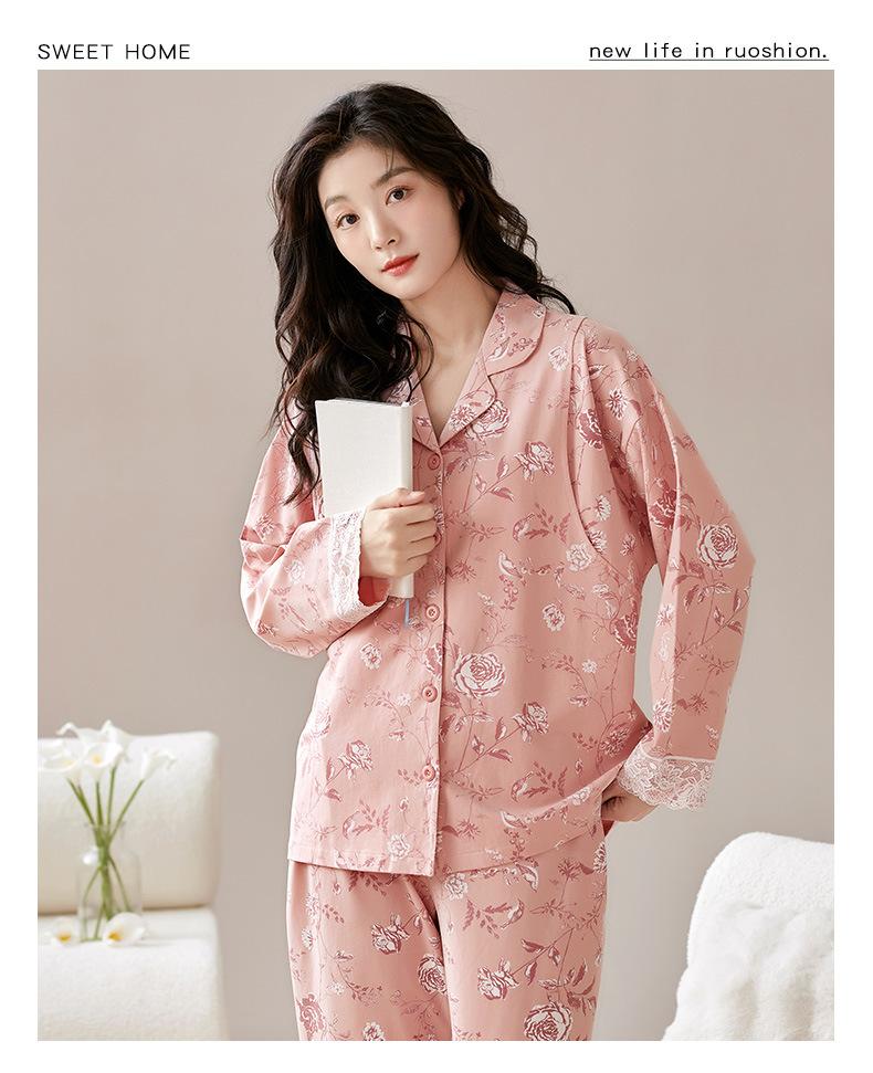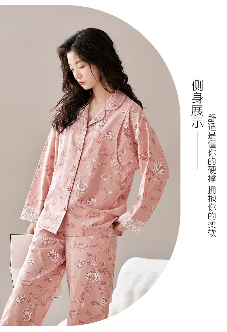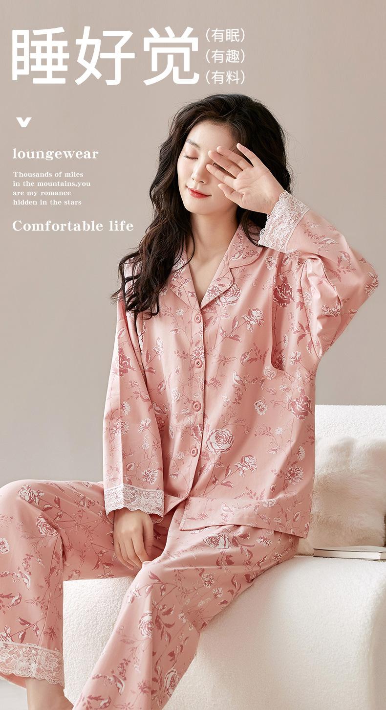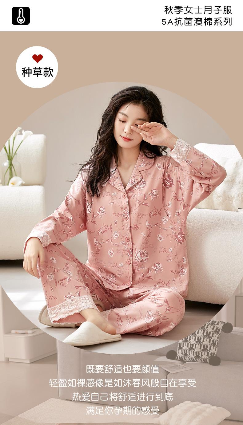 Pijama de mujer nuevo de otoño e invierno 5a, ropa de confinamiento antibacteriana, cárdigan, ropa de enfermería, traje de casa de manga larga de licra y algodón de talla grande