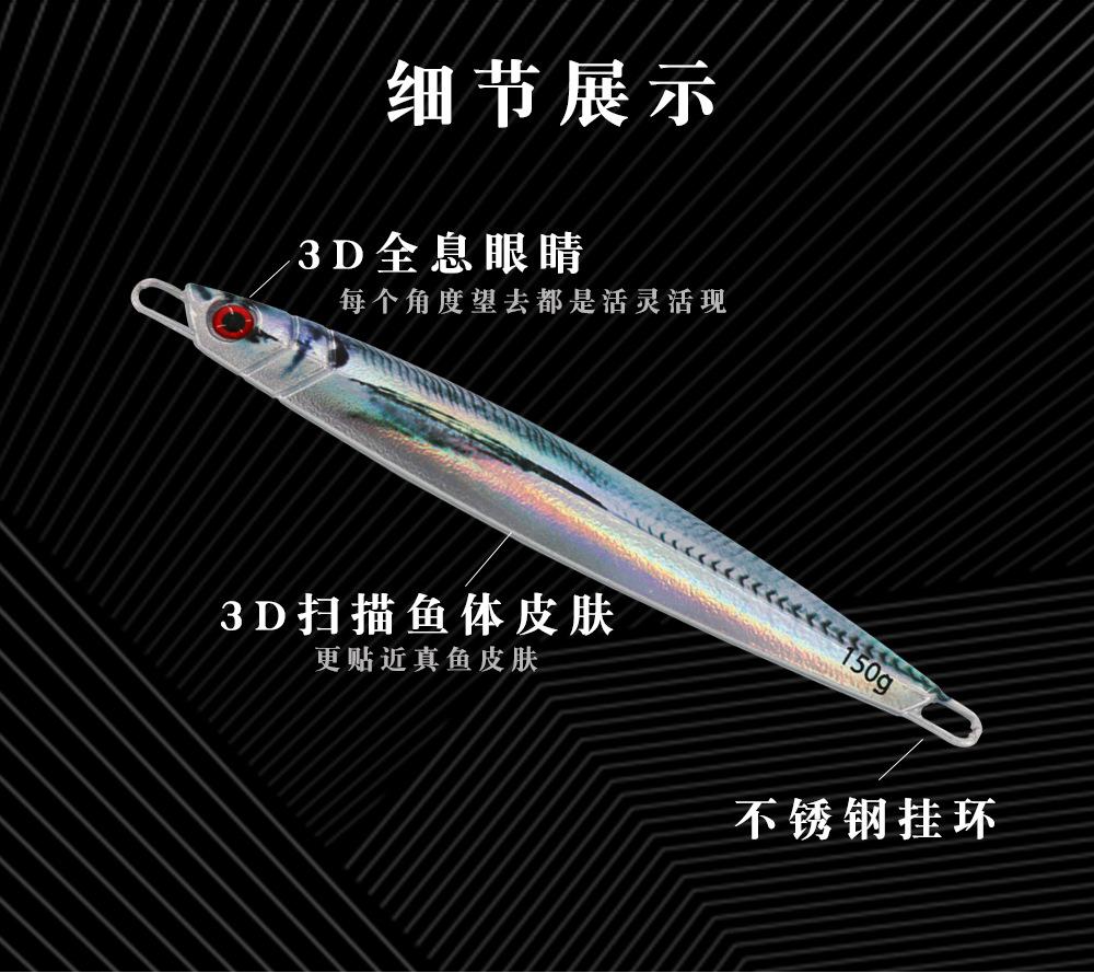 Impresión 3D Bionic Color Luya Cebo de placa de hierro Piel de pez real 150 g Cebo de plomo rápido Cebo artificial