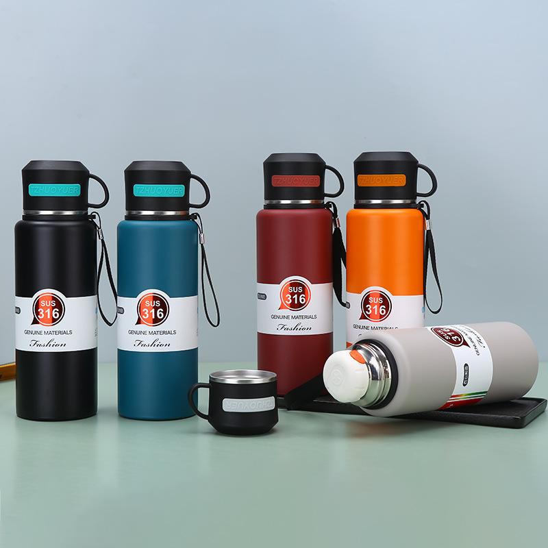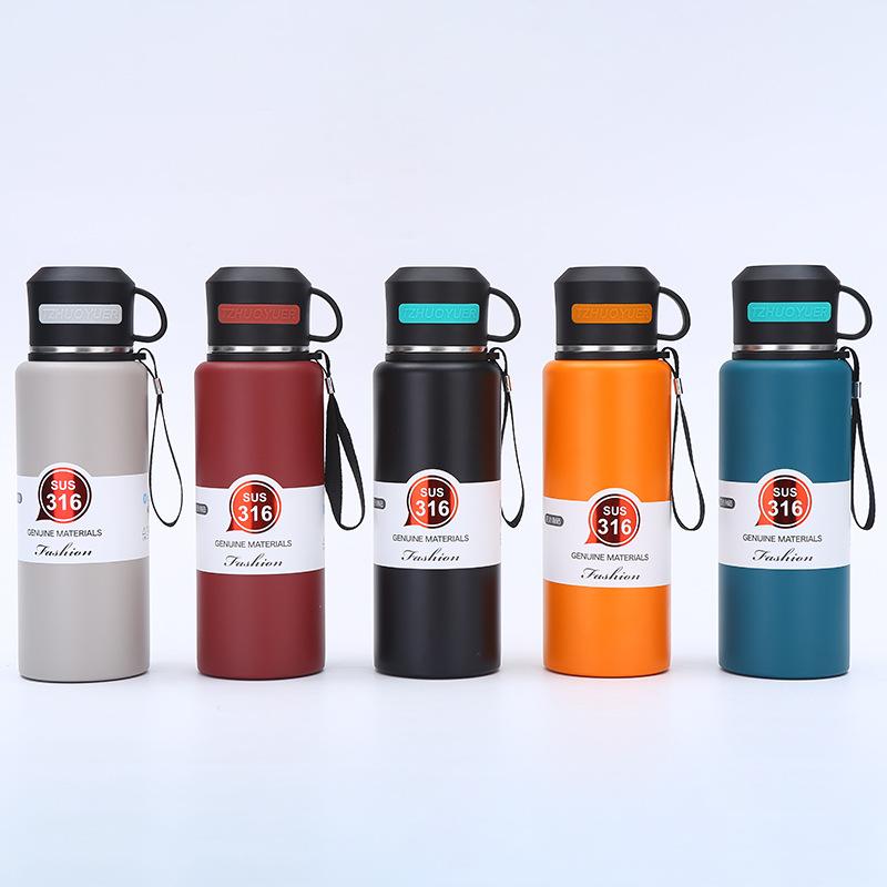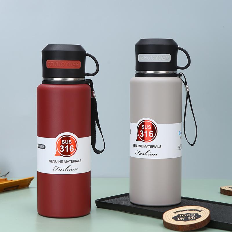 Vaso de acero inoxidable 316 personalizado con aislamiento al vacío, botella de agua deportiva de gran capacidad para exteriores, vaso portátil con cuerda para beber directamente.