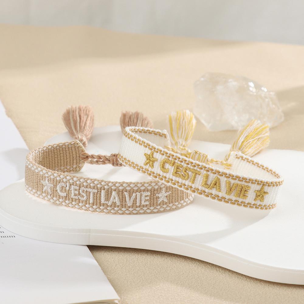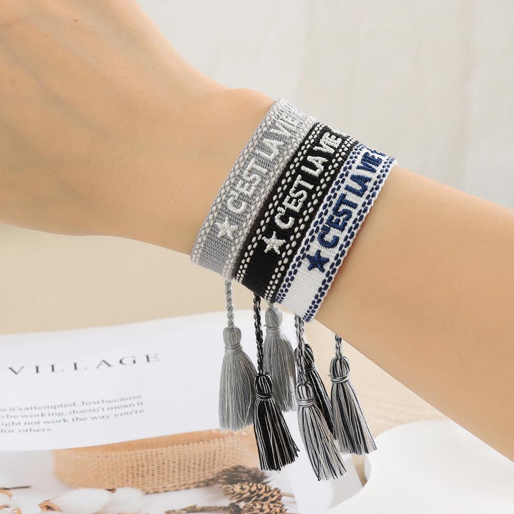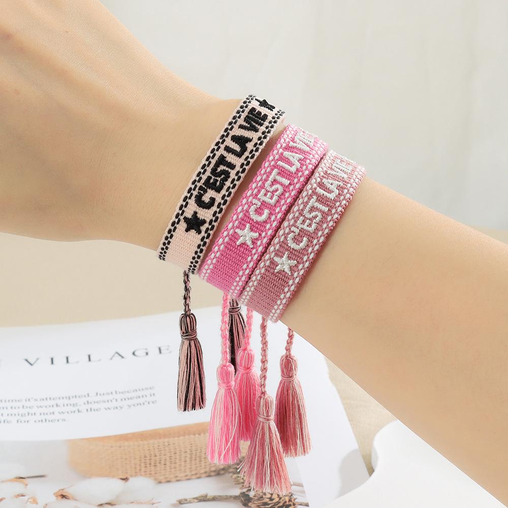 Pulsera de Letras Europeas y Americanas Transfronteriza Cestlavie Pulsera Tejida Bordada Simple Borla de Moda Cadena Hecha a Mano