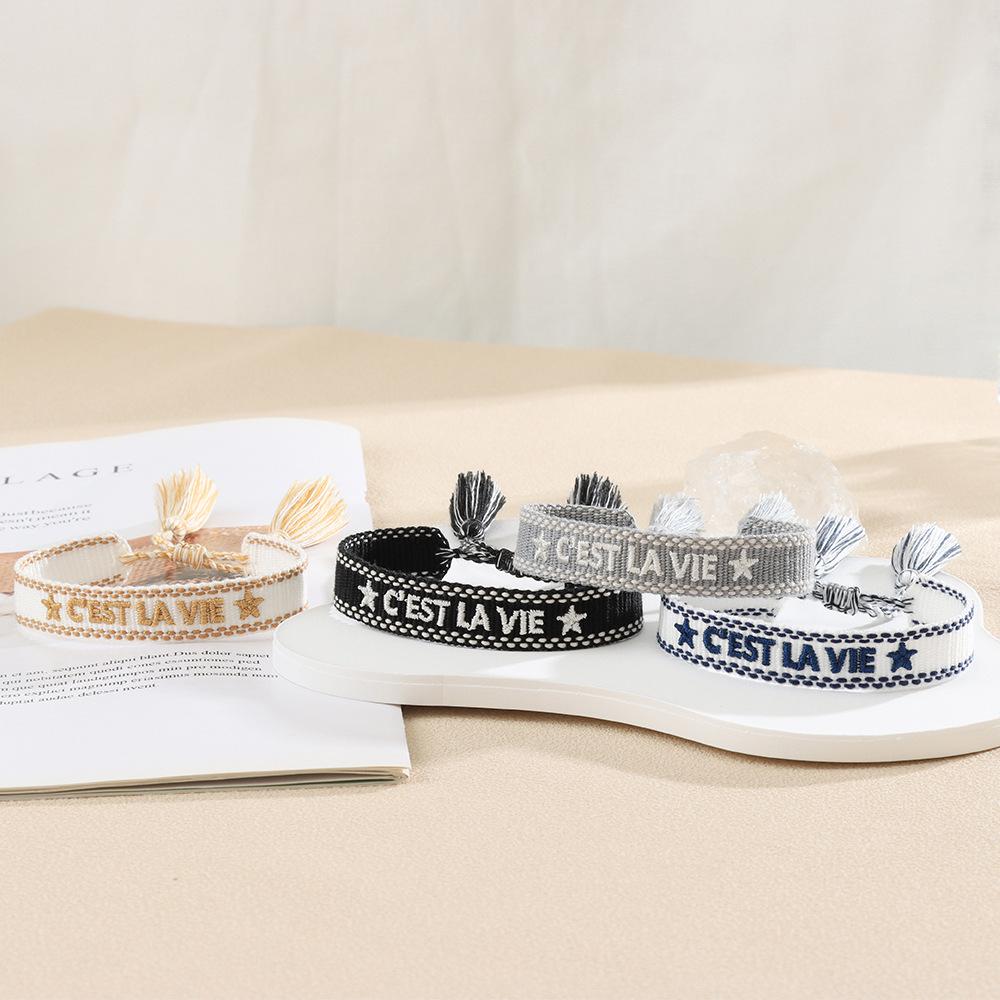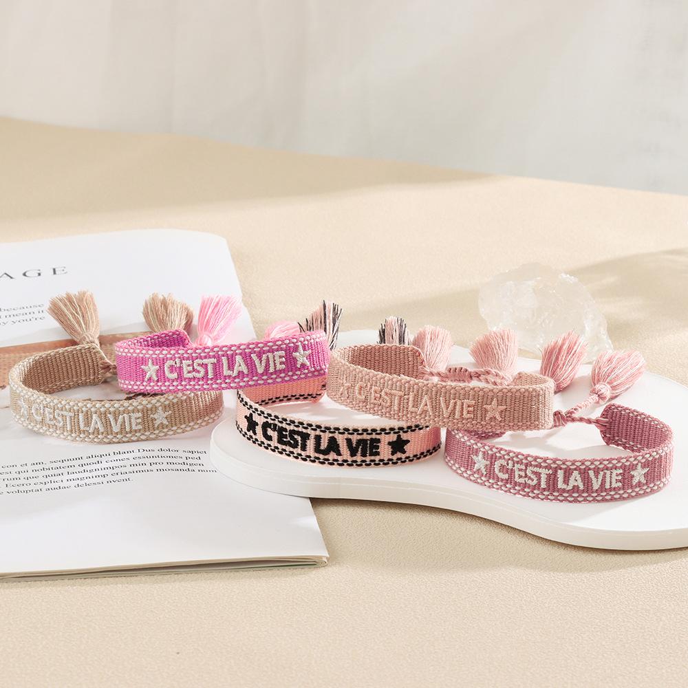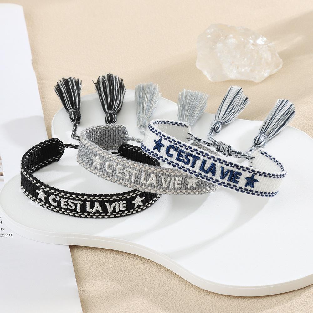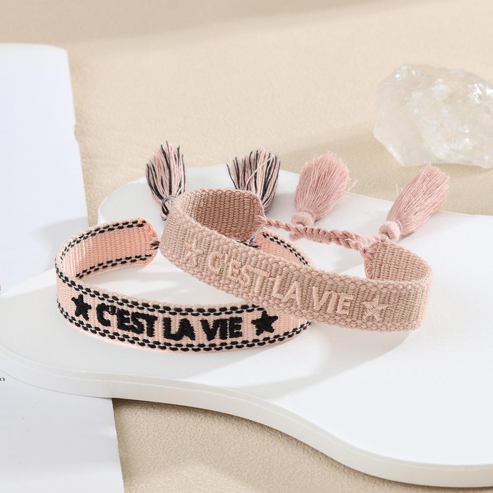 Pulsera de Letras Europeas y Americanas Transfronteriza Cestlavie Pulsera Tejida Bordada Simple Borla de Moda Cadena Hecha a Mano