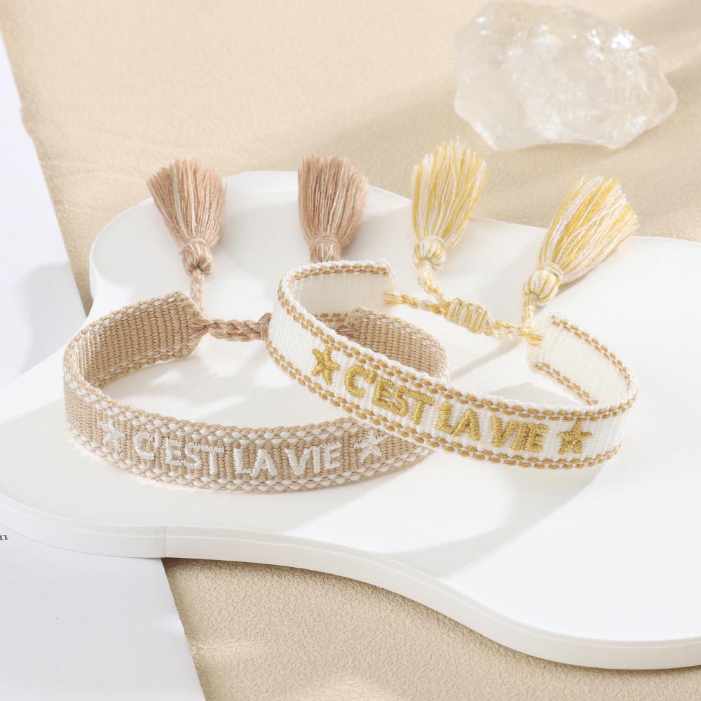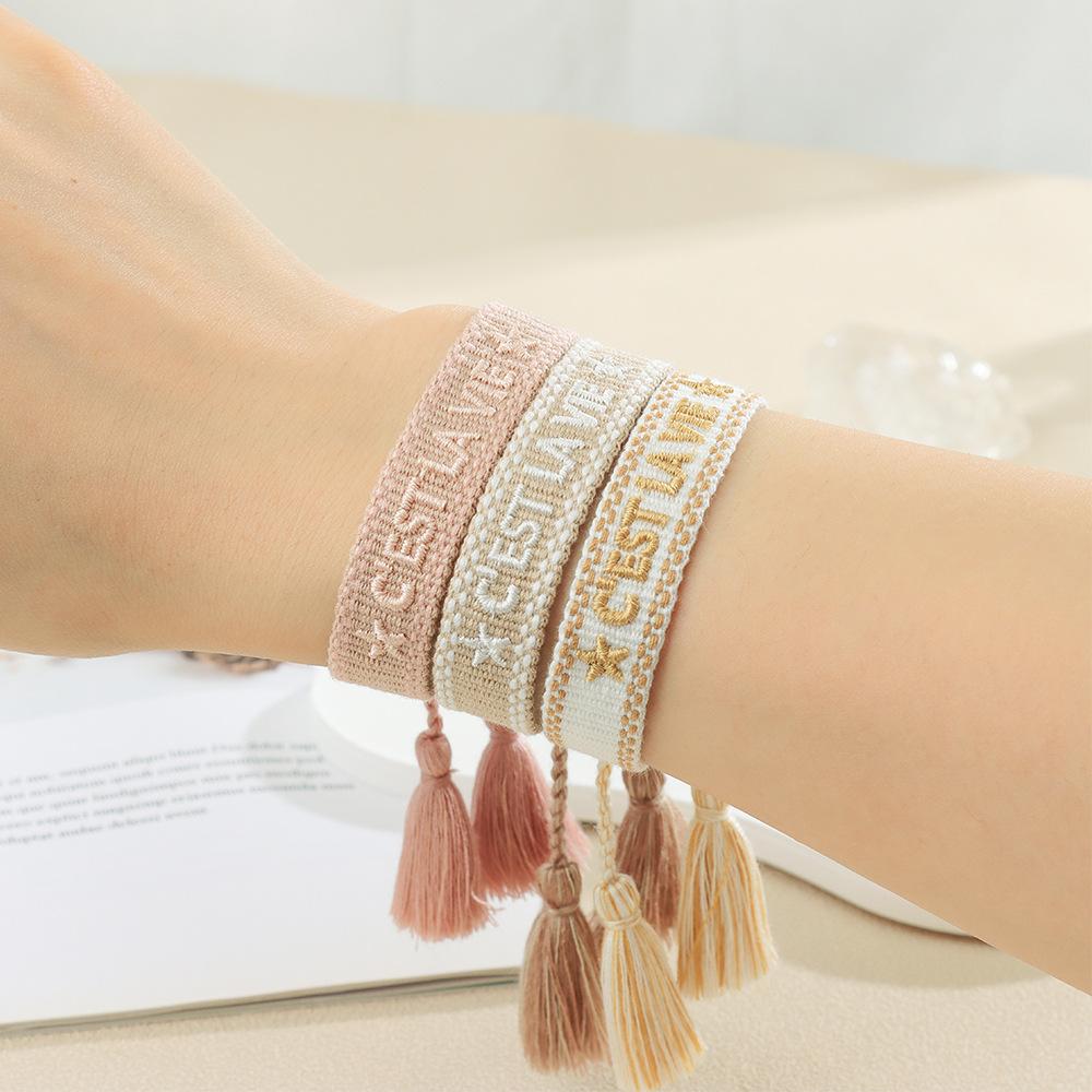 Compra Pulsera de Letras Europeas y Americanas Transfronteriza Cestlavie Pulsera Tejida Bordada Simple Borla de Moda Cadena Hecha a Mano al por mayor en Joom.pro