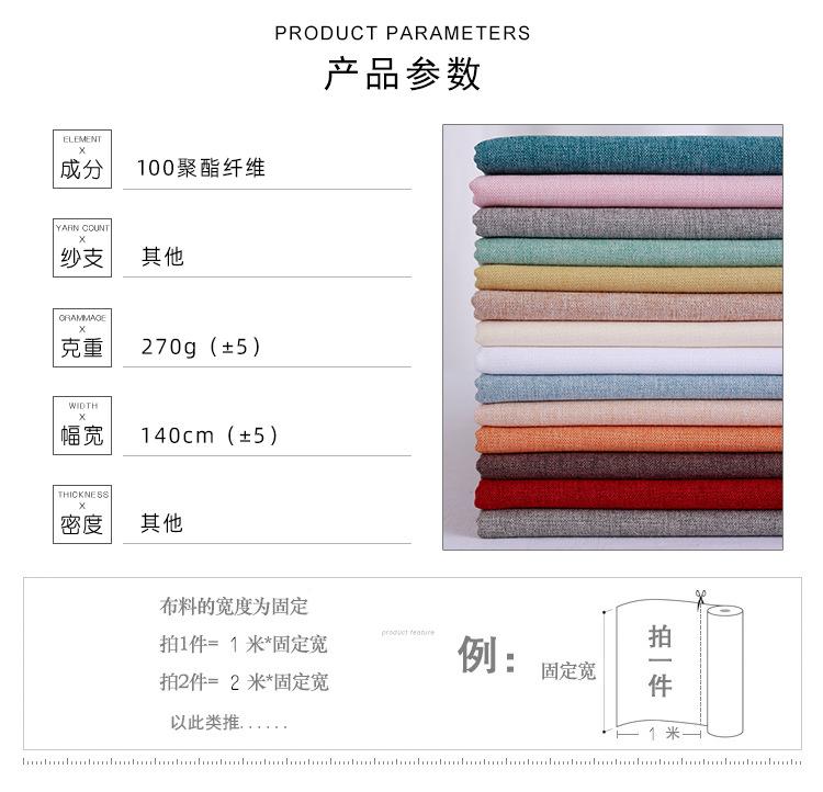 Tela Gruesa Teñida de Mezcla de Algodón y Lino de Punto Color Puro Lisa Cepillada Cortina Sofá Almohada Mantel Tela para Almohada