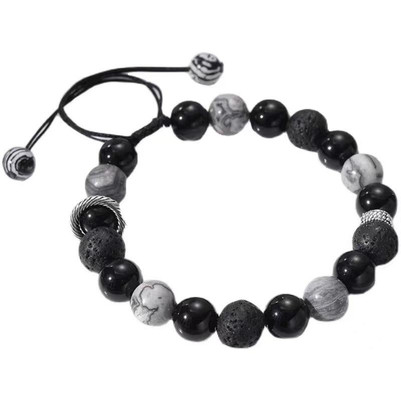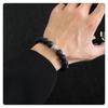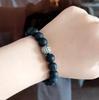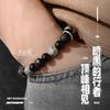| Pulsera de obsidiana del mismo estilo Wukong de mitología negra para hombre, pulsera de cuentas budistas de obsidiana plateada con lema de seis palabras de buena suerte para mujer |