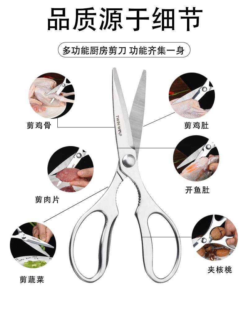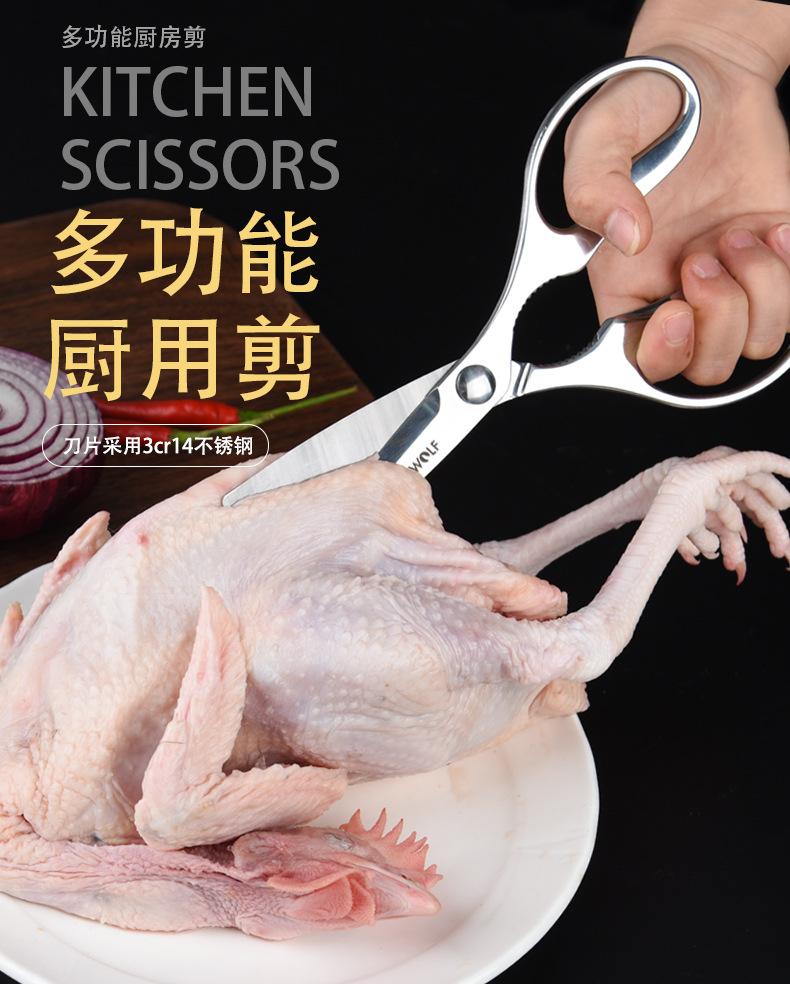 Tijeras de cocina, tijeras para huesos de pollo, tijeras para alimentos, cuchillo para huesos, tijeras eléctricas para barbacoa, tijeras grandes de acero, tijeras multifunción para el hogar, suministro transfronterizo
