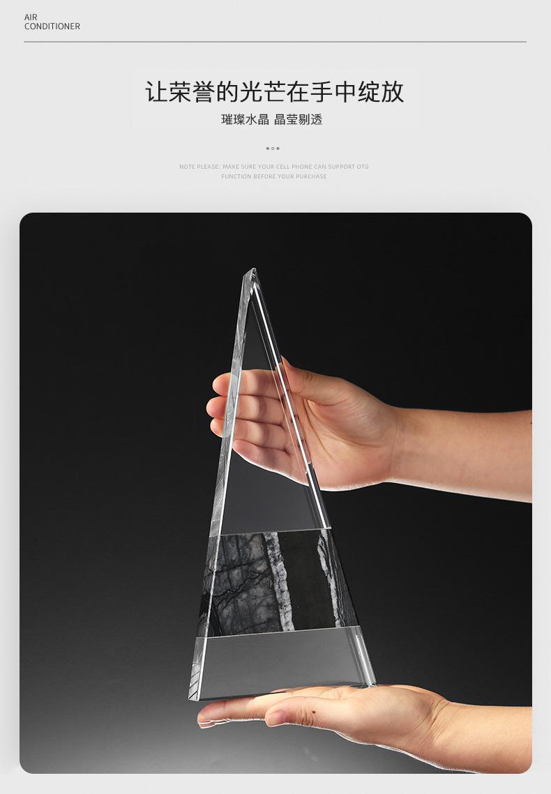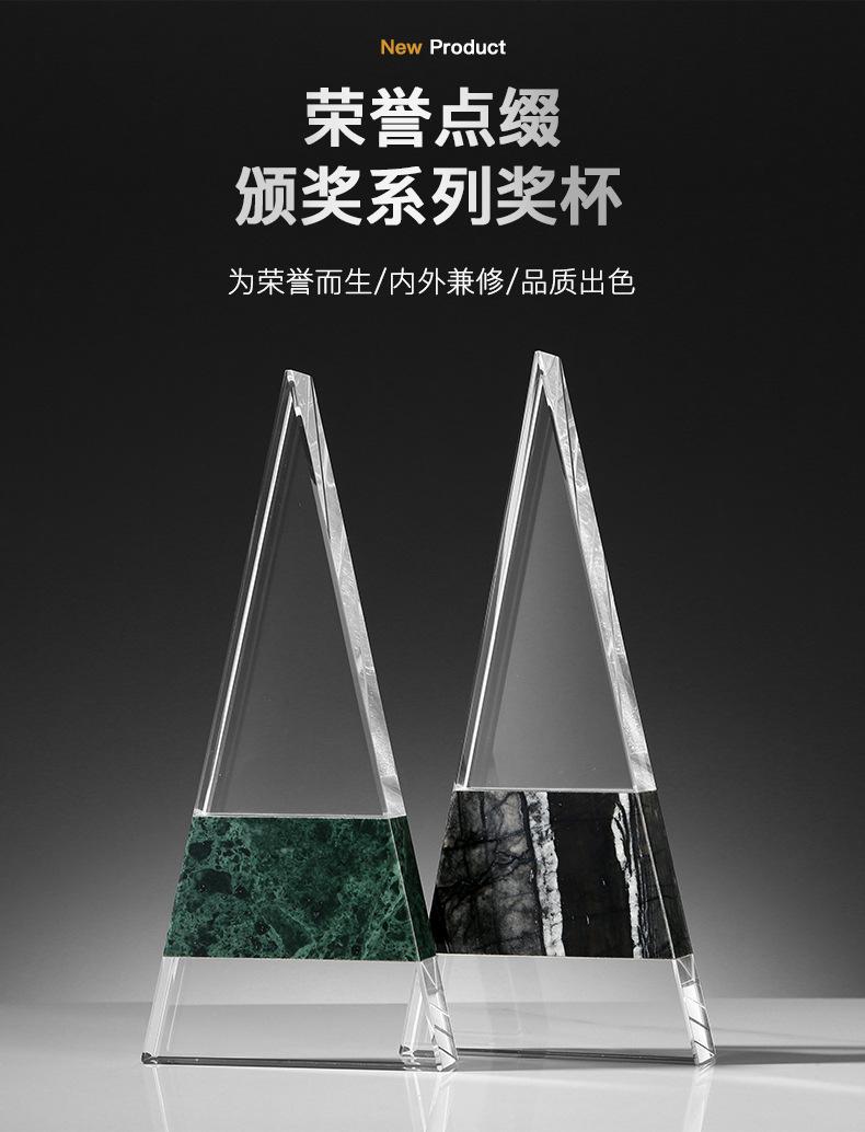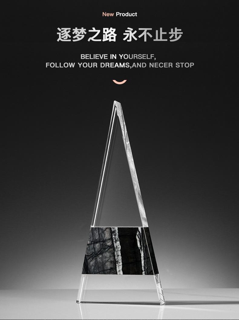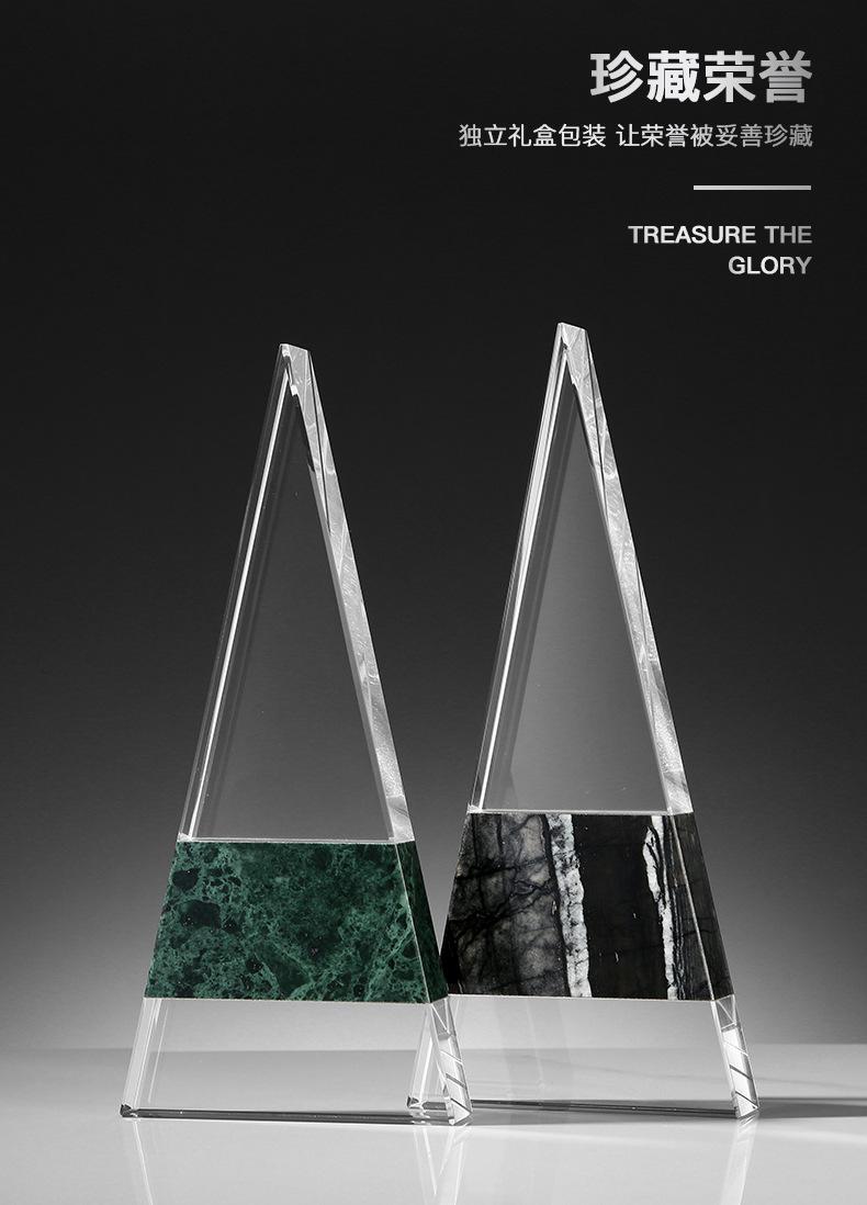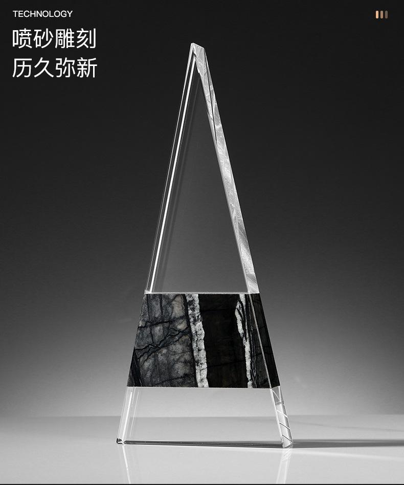 Trofeo de cristal de triángulo de mármol, trofeo, tarjeta de autorización creativa, producción, reunión anual, premio para el personal, recuerdo, producto de honor