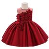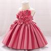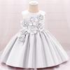 Vestido de bebé de un año, vestido de princesa de satén para niña, vestido de princesa con flores para niña, vestido de cumpleaños de cien días, vestido lavado