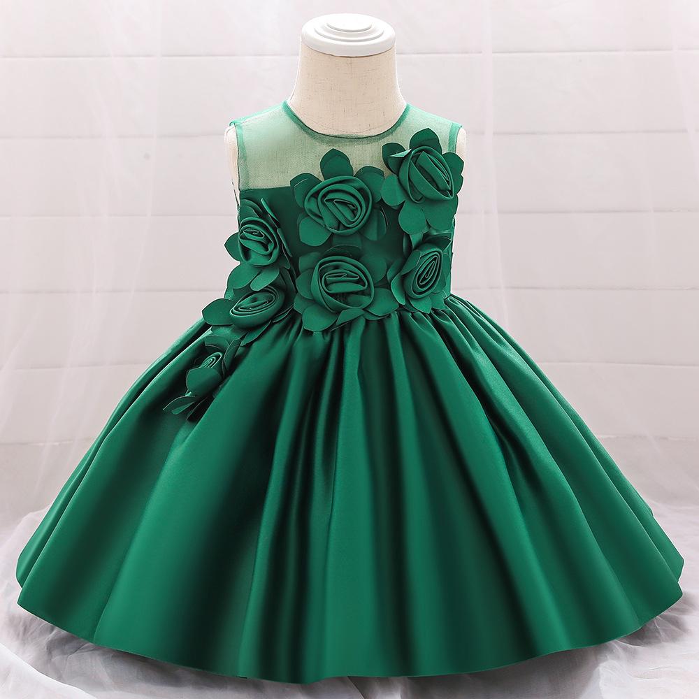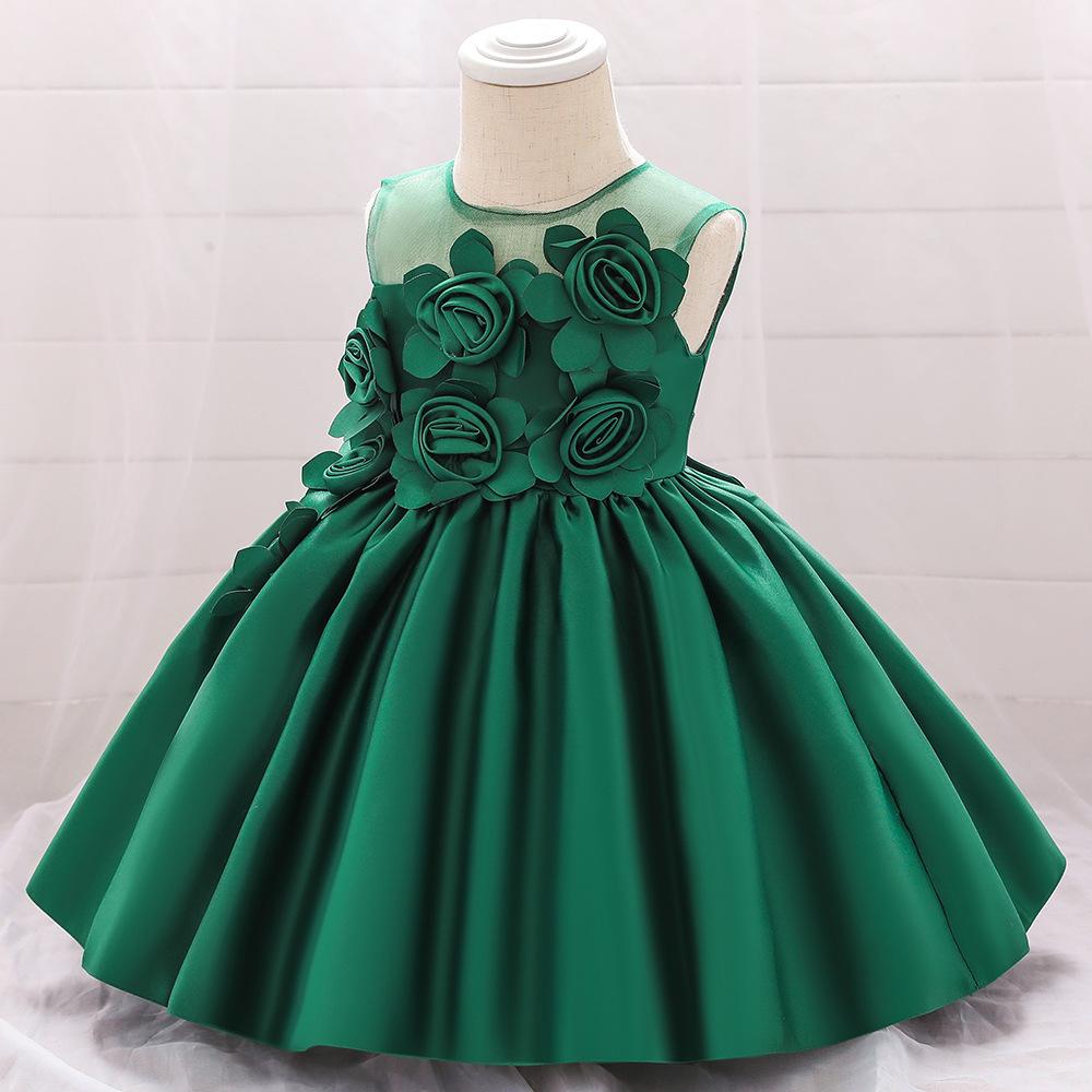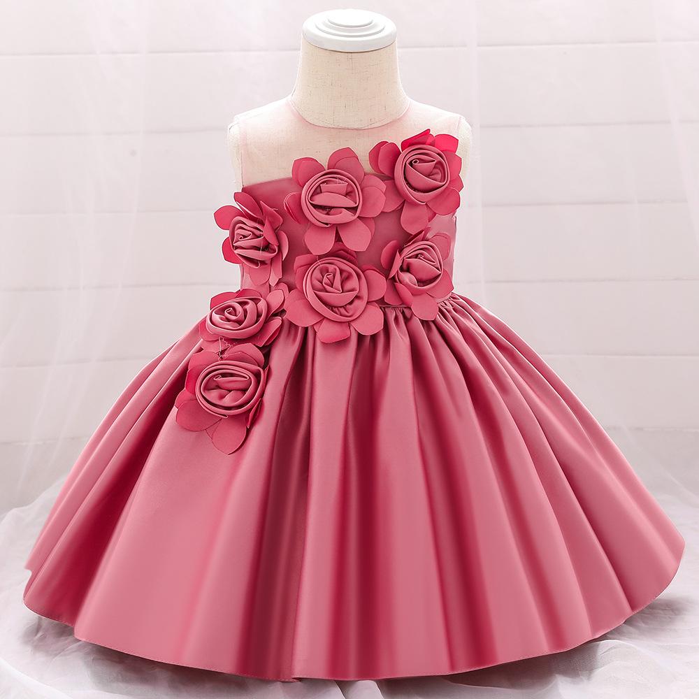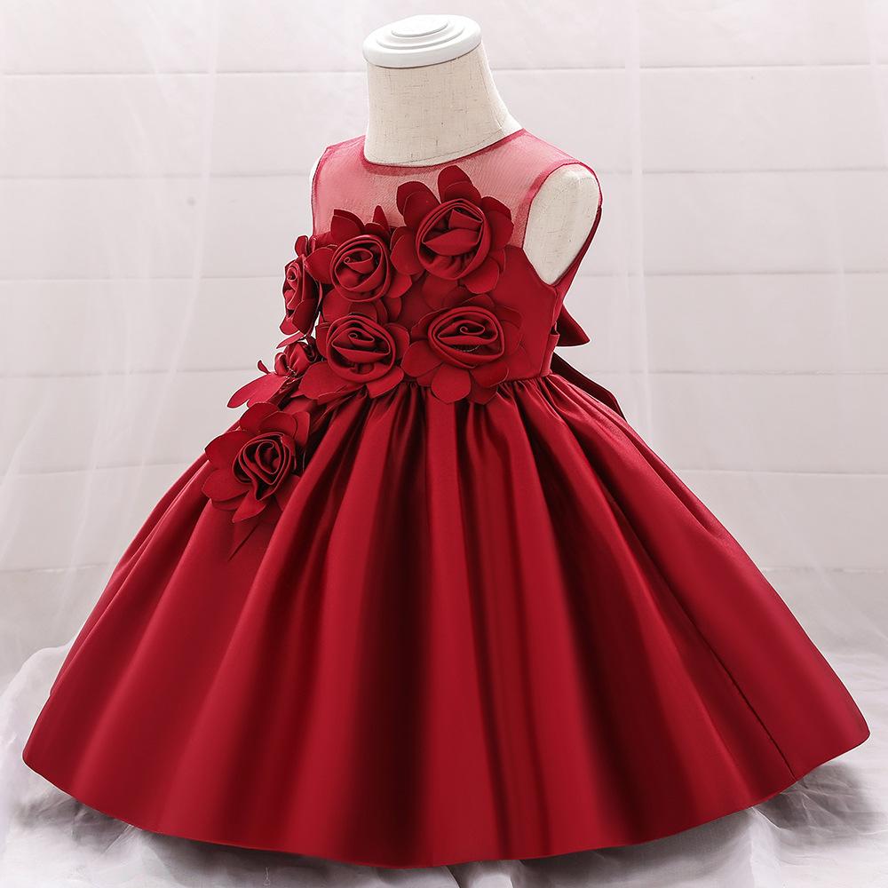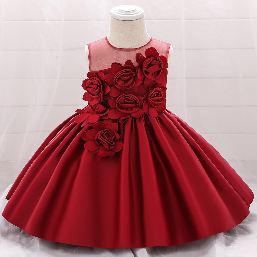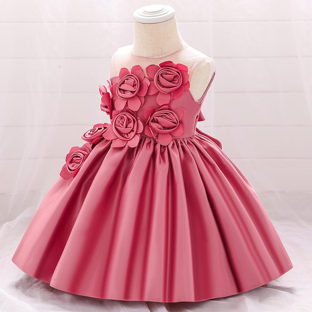 Compra Vestido de bebé de un año, vestido de princesa de satén para niña, vestido de princesa con flores para niña, vestido de cumpleaños de cien días, vestido lavado al por mayor en Joom.pro