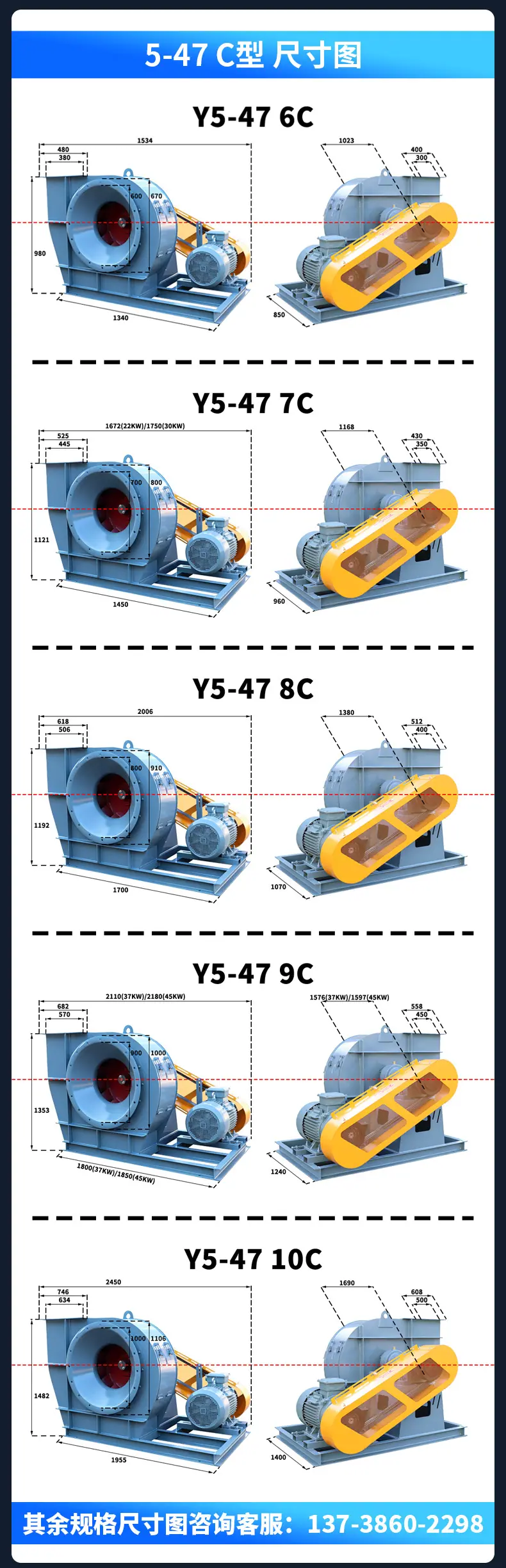 Ventilador de extracción tipo Y5-47C de presión media, Ventilador de tiro inducido para caldera resistente a altas temperaturas, Ventilador centrífugo industrial, Equipo de protección ambiental