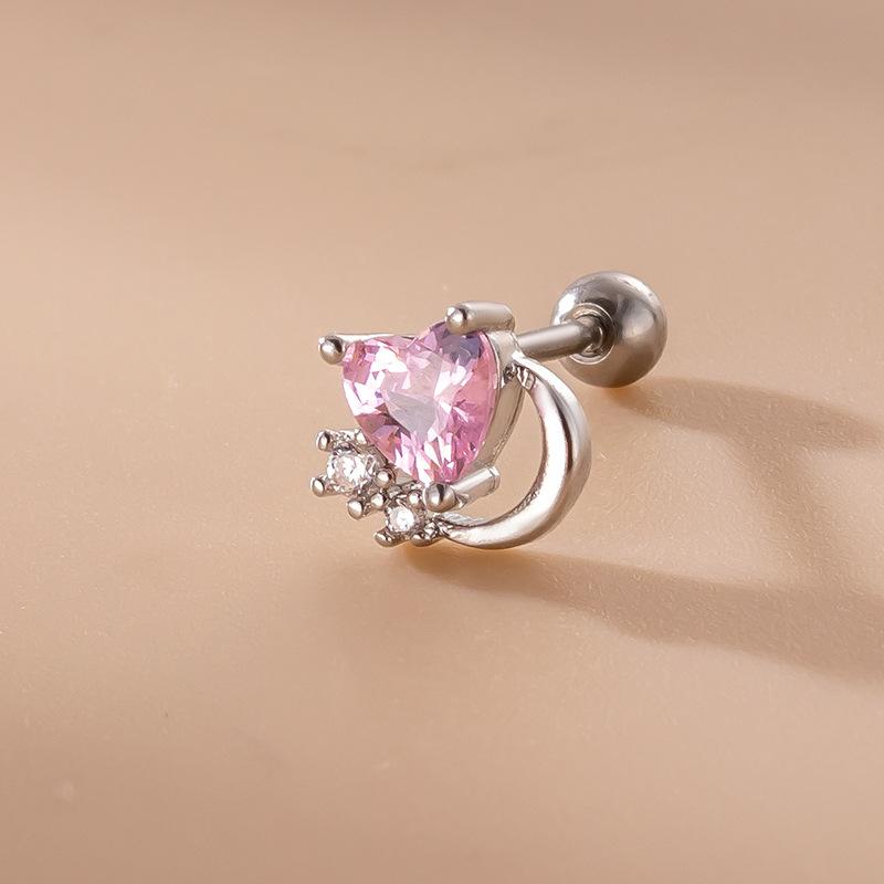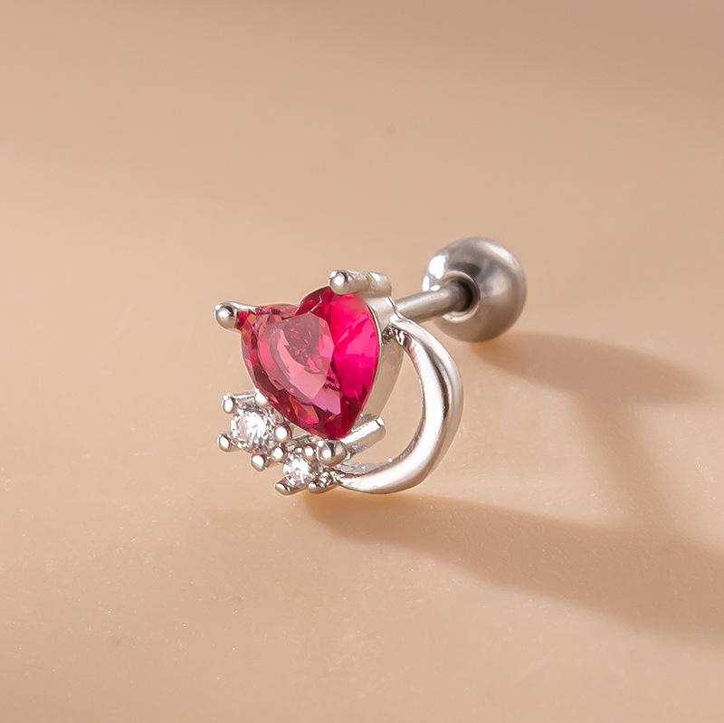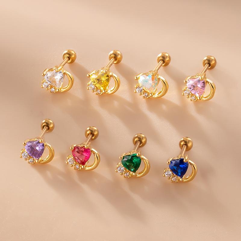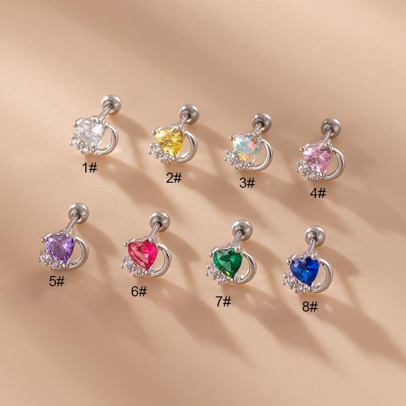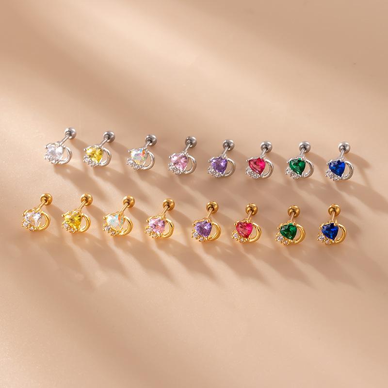 | nombre del producto | Aretes de corazón de circón de color, tornillos de doble cabeza, acero inoxidable, varilla delgada, aretes de cartílago de moda coreana |