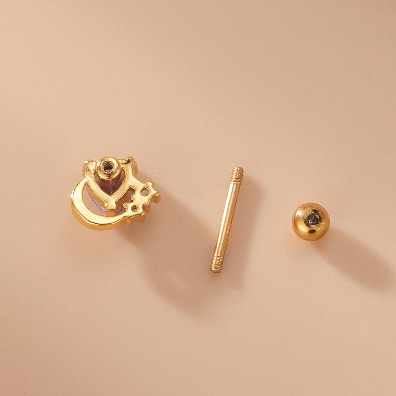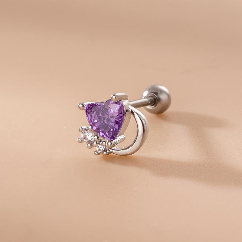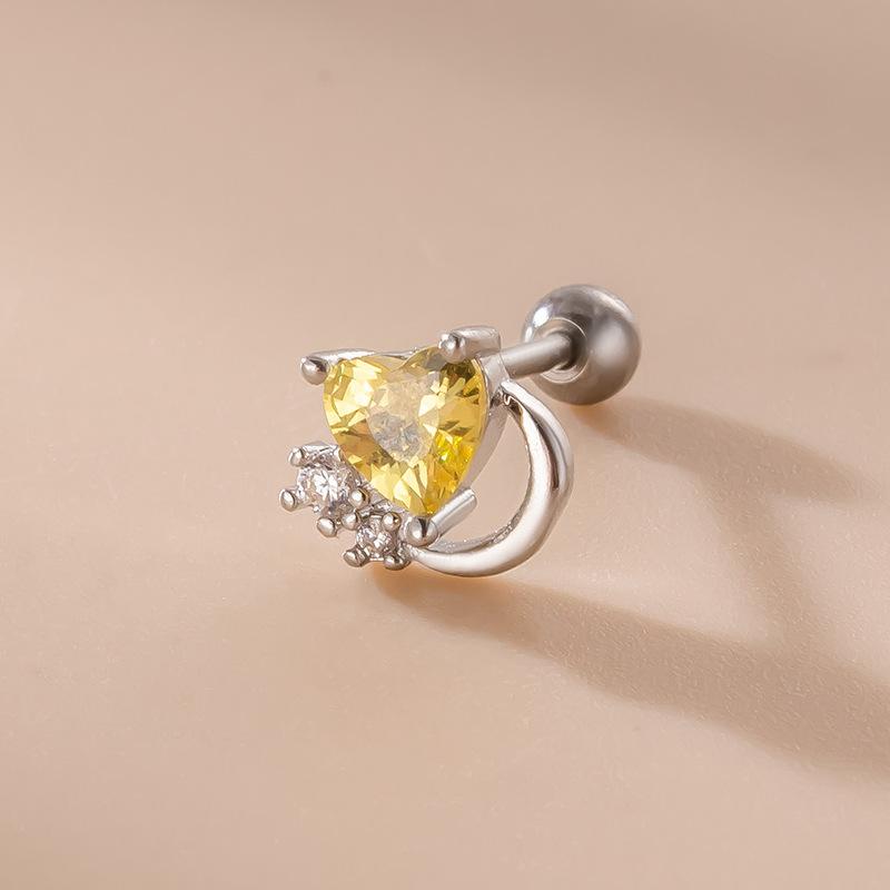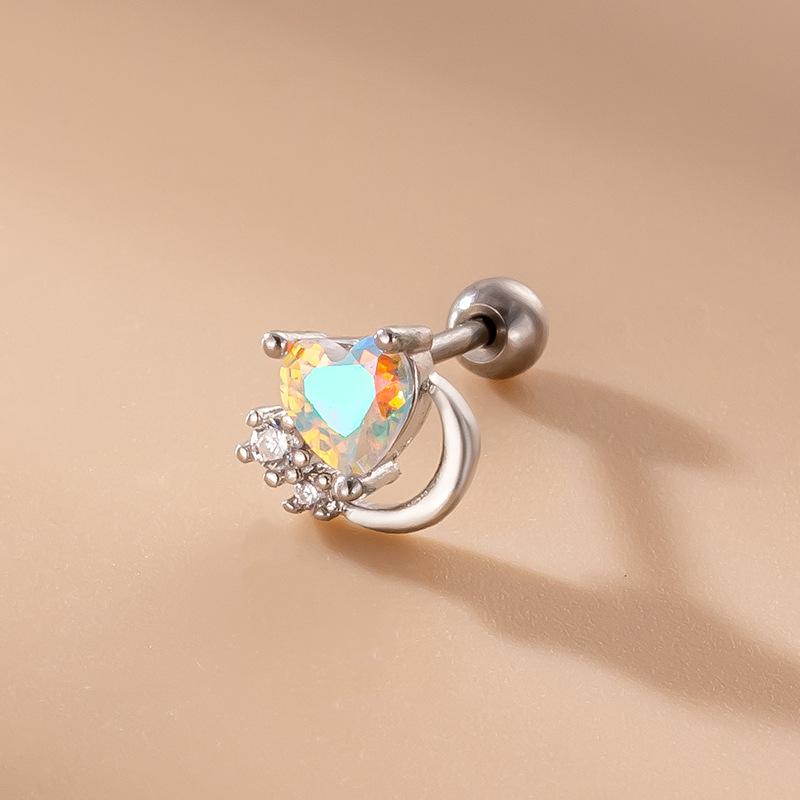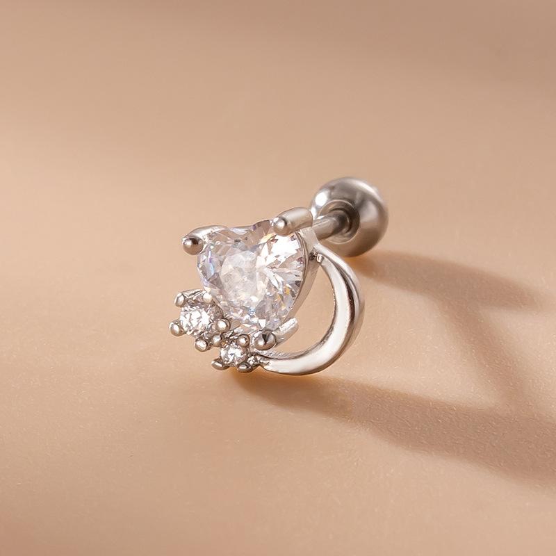 | nombre del producto | Aretes de corazón de circón de color, tornillos de doble cabeza, acero inoxidable, varilla delgada, aretes de cartílago de moda coreana |