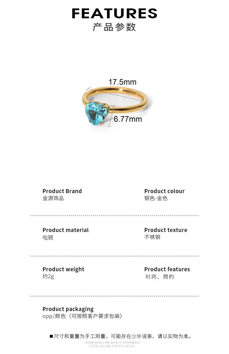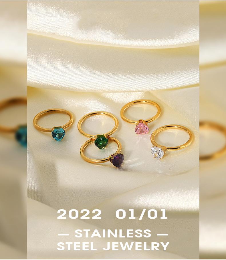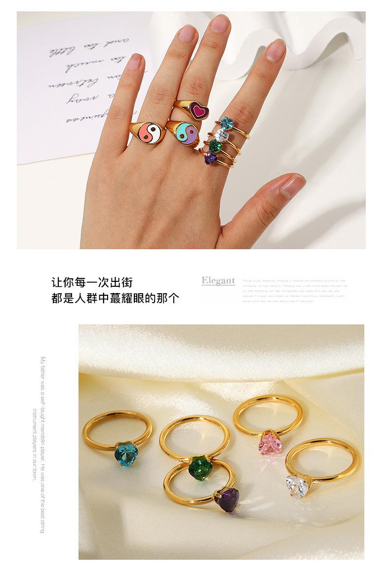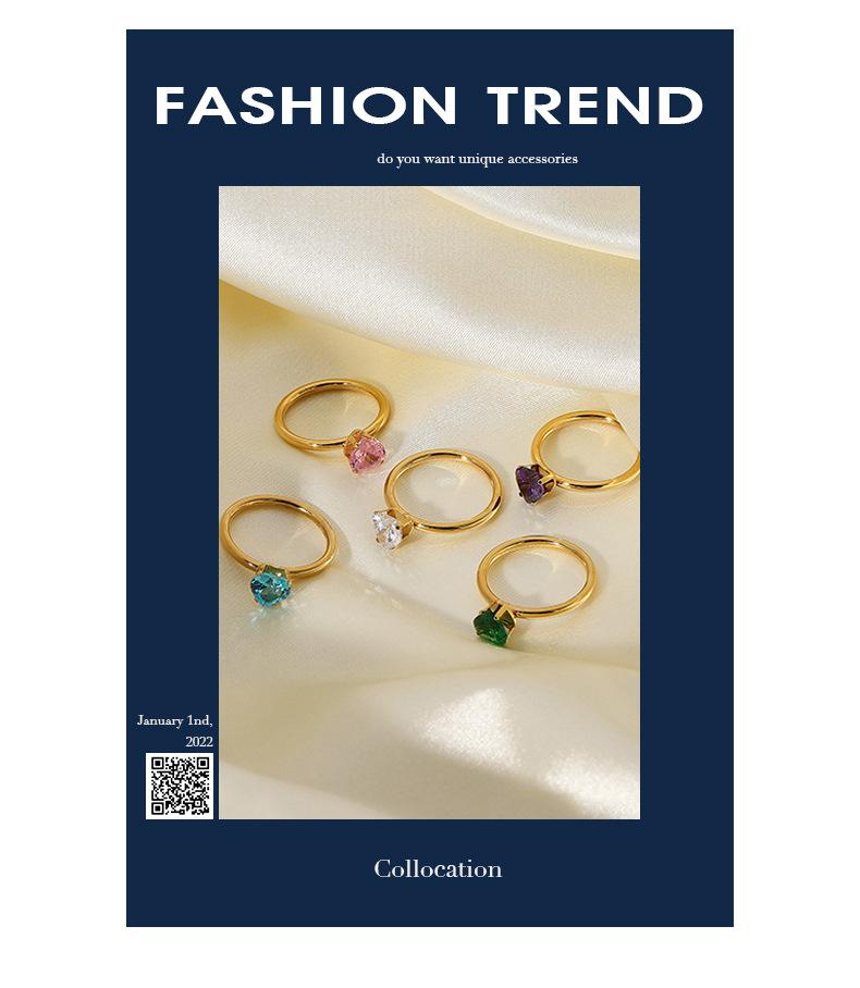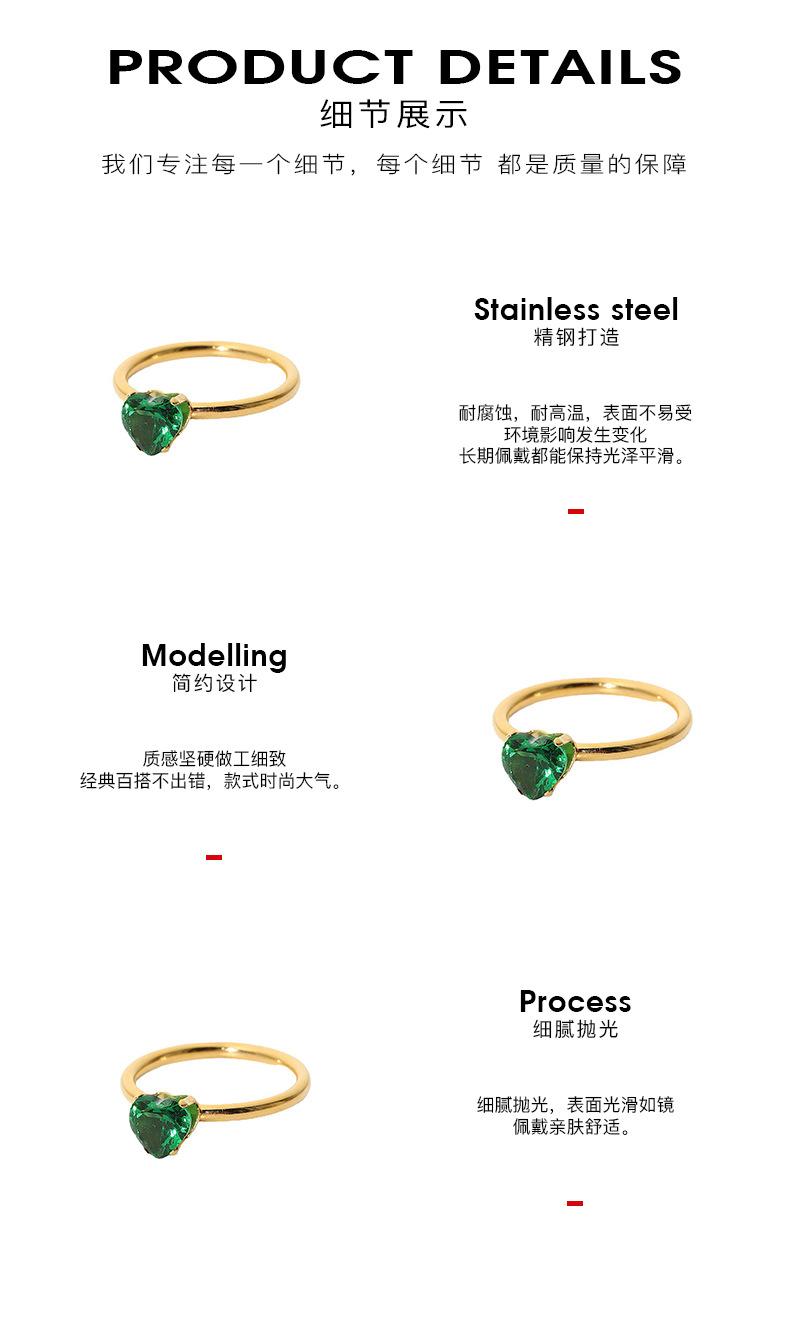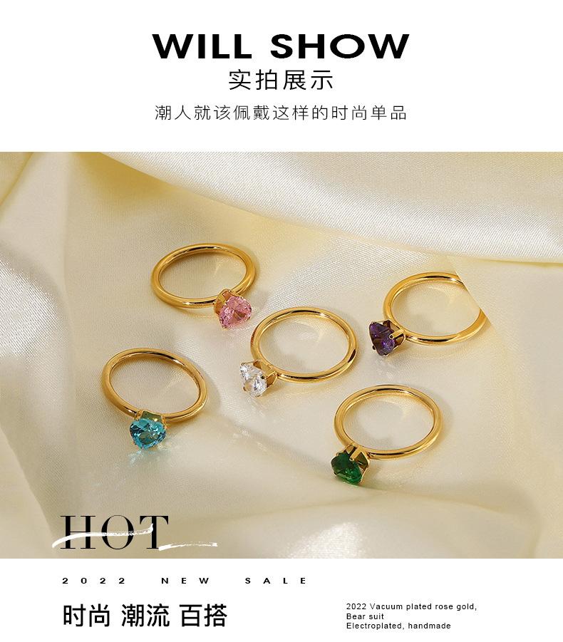 Anillo de acero inoxidable con diamante en forma de corazón ins celebridad de internet mismo estilo oro de 18 quilates acero de titanio anillo femenino sentido del diseño nicho simple