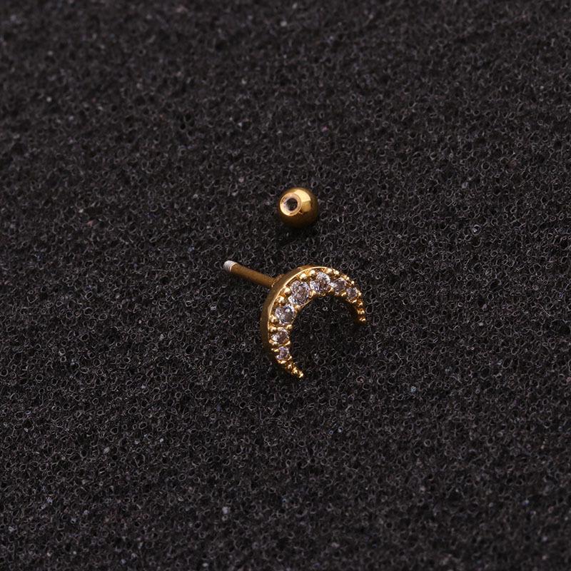 | nombre del producto | Versión coreana de los aretes de varilla delgada de luna nueva, aretes simples de circonita y bola de acero inoxidable, joyería para perforaciones de oreja transfronteriza |