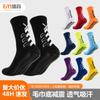 Calcetines de fútbol para niños, con patrón de colores, parte inferior de toalla, antideslizantes hasta la rodilla para adultos, calcetines deportivos de fútbol a rayas de tubo largo, personalizados al por mayor