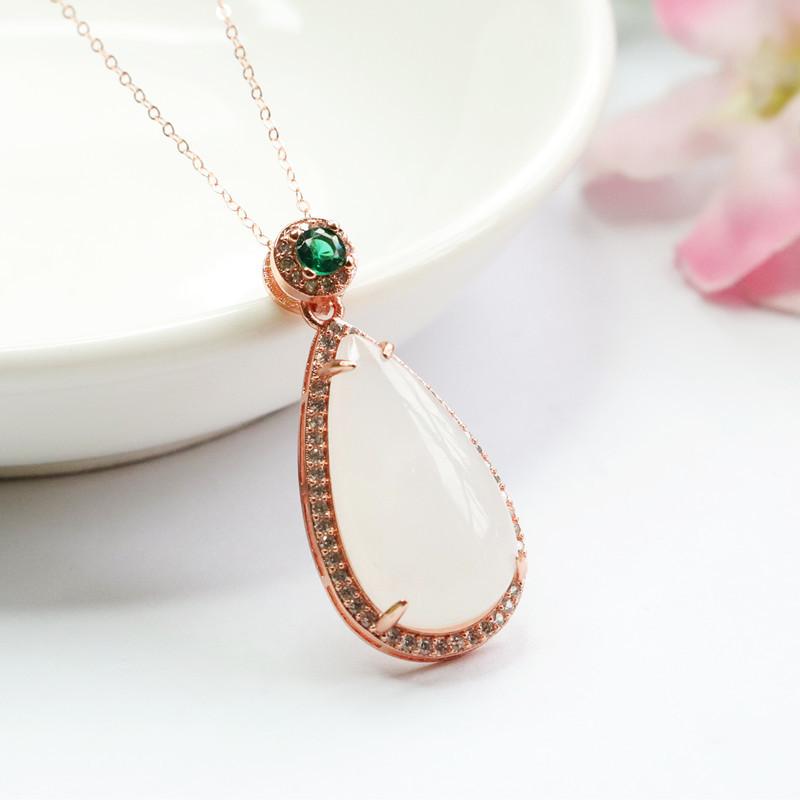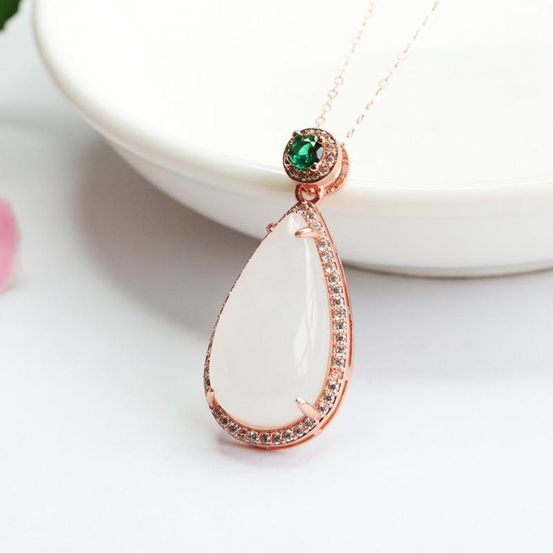 Colgante de Jade Hetian Natural de Guan Yu Jade Blanco Gota de Agua Collar Fábrica de Joyería de Jade Transmisión en Vivo Dropshipping S2100707
